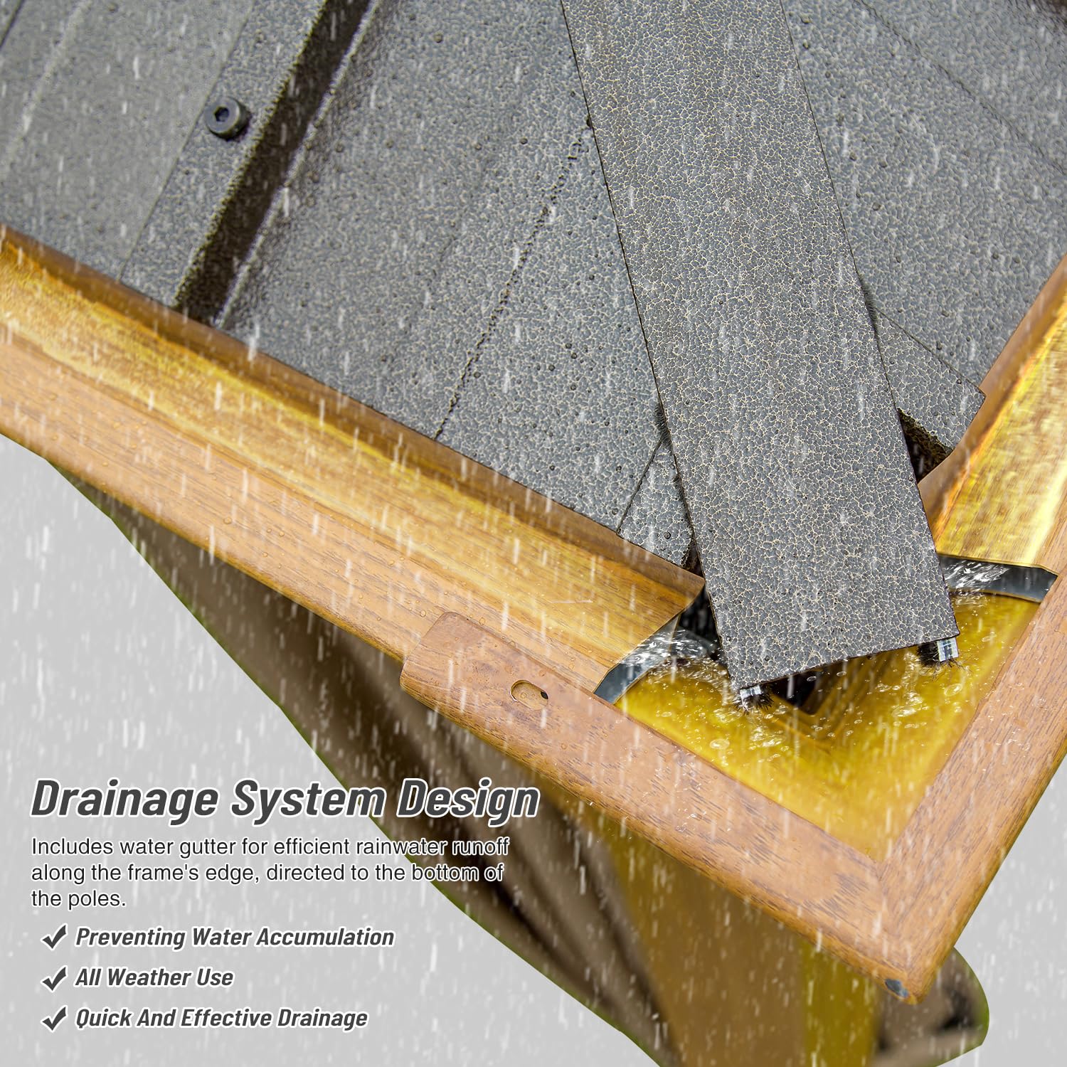 - ❤️Choose Domi Hardtop Gazebo for an Exceptional Outdoor Experience- Our built-in drainage system collects rainwater on the roof, flowing down from inside the column to the ground through the gutter. This feature ensures you can enjoy the tranquility and comfort of outdoor life even on rainy days, avoiding any chaos caused by rainfall. If you value quality, choose Domi gazebo for a seamless outdoor experience.