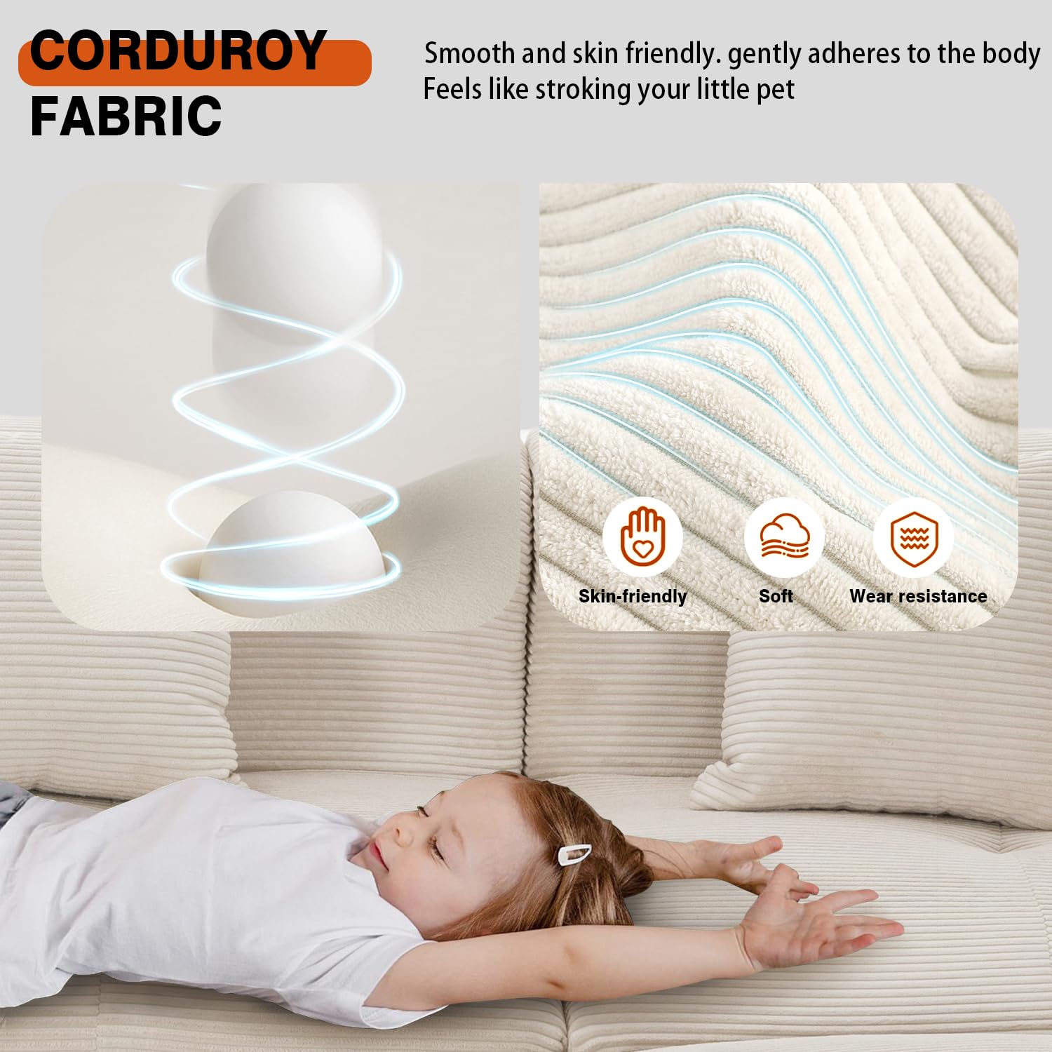 • 💕 Soft Corduroy Fabric & High Elastic Foam: Experience unmatched comfort with our sofa, made from high-quality foam and soft corduroy fabric. This sectional sofa offers a luxurious feel, and the cozy corduroy provides a plush seating experience, making it perfect for relaxation.The seat cushions filled with high elastic foam can fully support you whether sitting or lying down. You can even jump vigorously on the sofa without worrying about it falling apart.