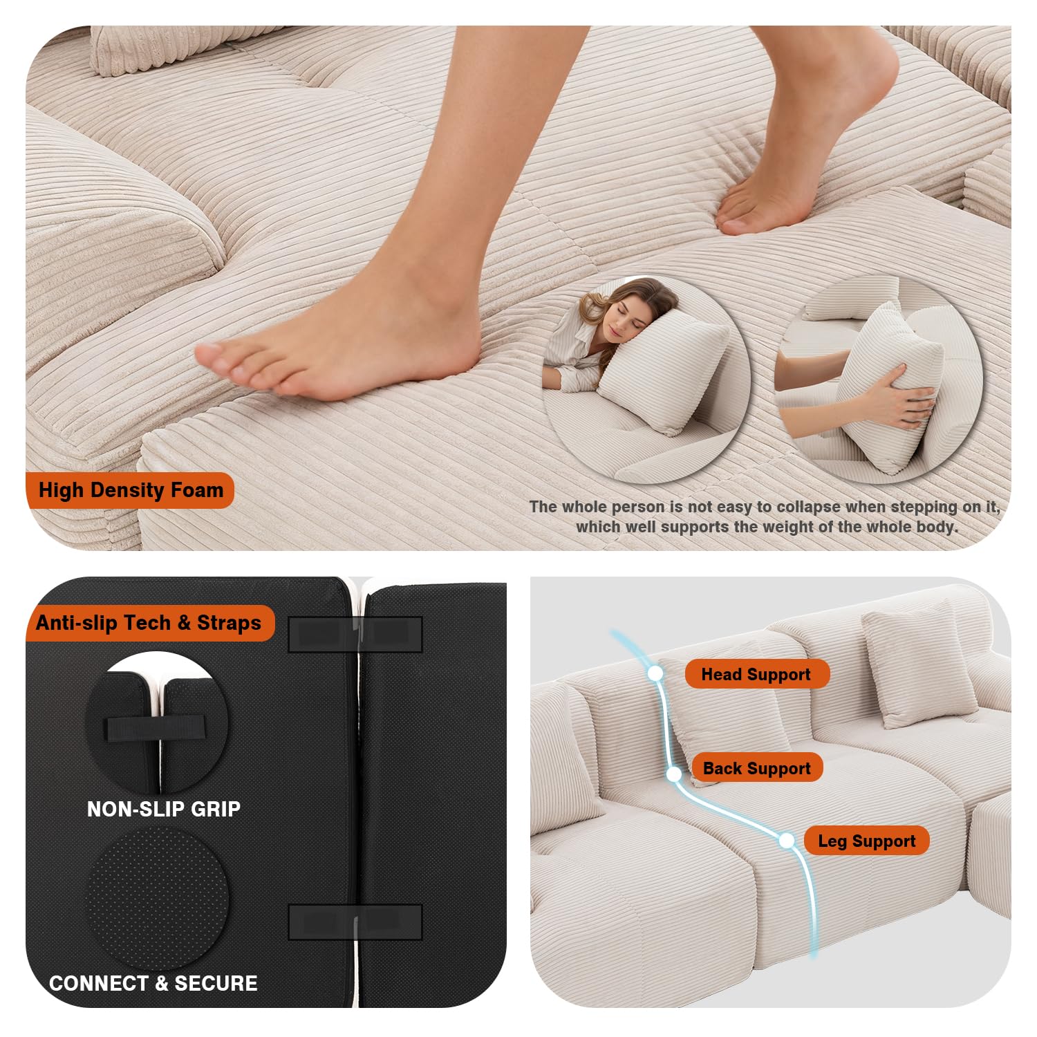 • 💕No Assembly Required: Our modular sofa eliminates the hassle of complicated furniture setup, it's ready to arrange right out of the box. Arrives vacuum-compressed, simply unpack all components and gently pat each module to activate its elasticity, and let it absorb air for about 72h to restore it to its original status.