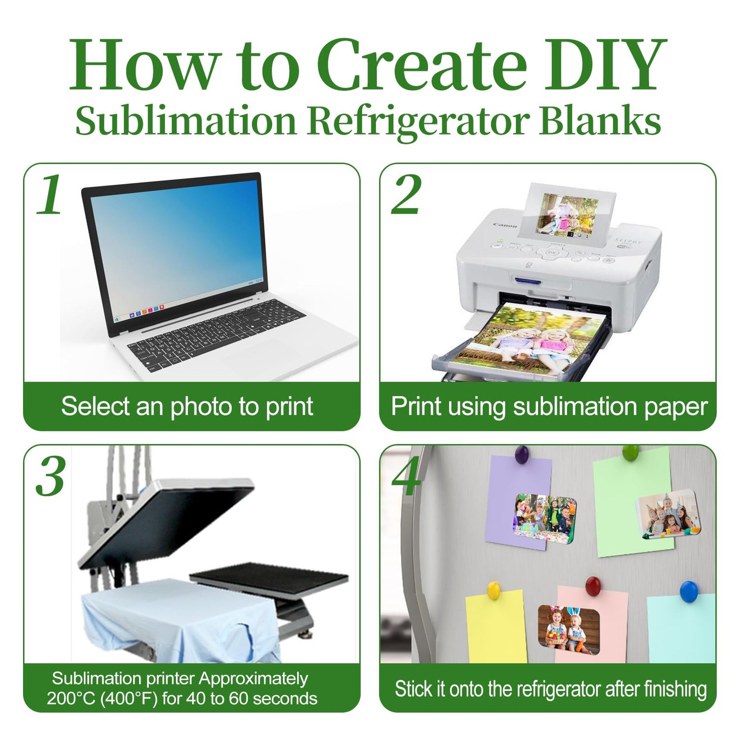 - How to Use: To create your own custom magnets, simply print your images on the blank surface, ensure they are dry, and then attach the magnet. This process is simple, allowing for easy customization.
