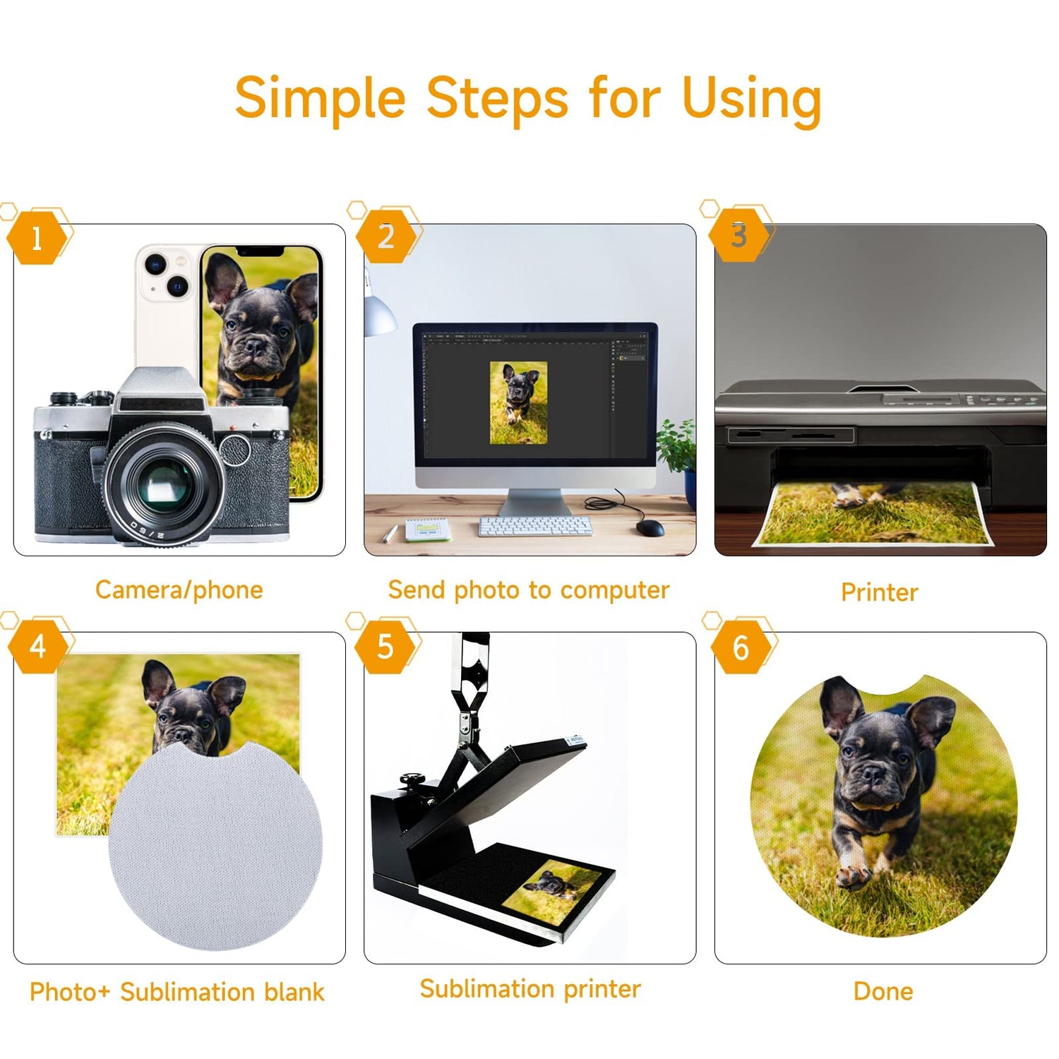 - 【How to Sublimate Coasters】The sublimation coasters blanks covered with thermal transfer fabric, you can use transfer machine temperature is about 356°F/180°C to 428°F/220°C, press time is about 20-60 seconds. Kindly please adjust the temperature and time according to the different heat presses