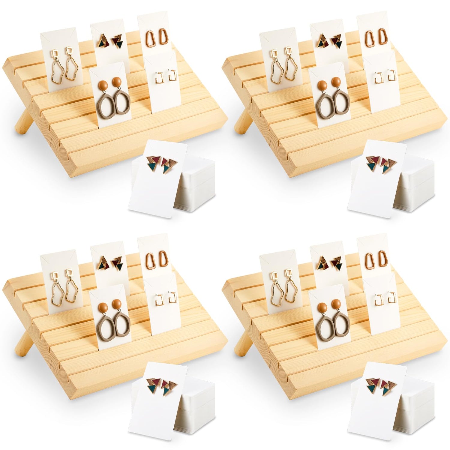 124 Pcs Wood earring card display wooden earring display stand 4 Set Jewelry stand holder with Card for Jewelry Selling(Wood Color)