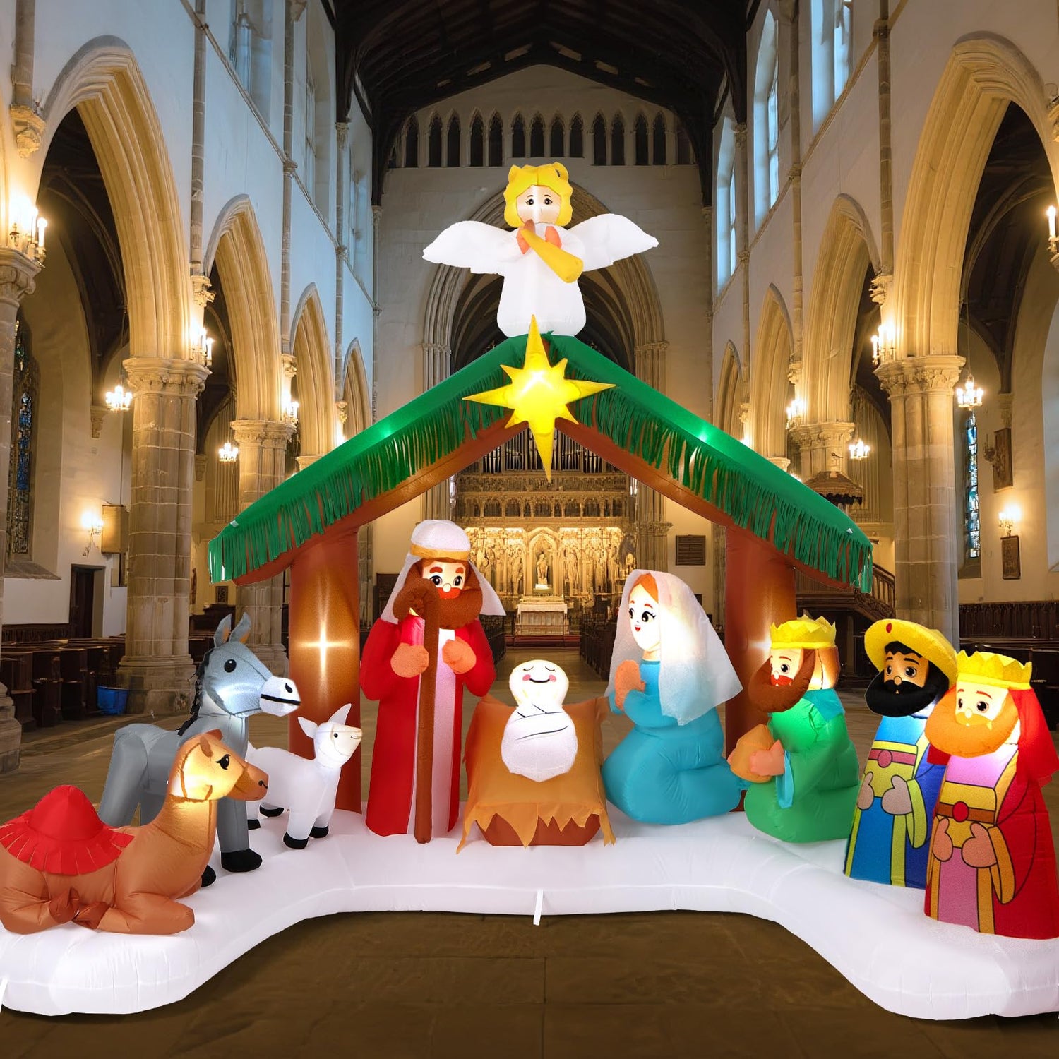 12FT Christmas Inflatable Nativity Scene: Large Outdoor Christmas Decorations, Built-in 15 LED Lights, Blow Up Jesus Nativity Set Decor, Inflatables for Party Lawn Garden Yard (12FT X 6.5FT X 9FT)