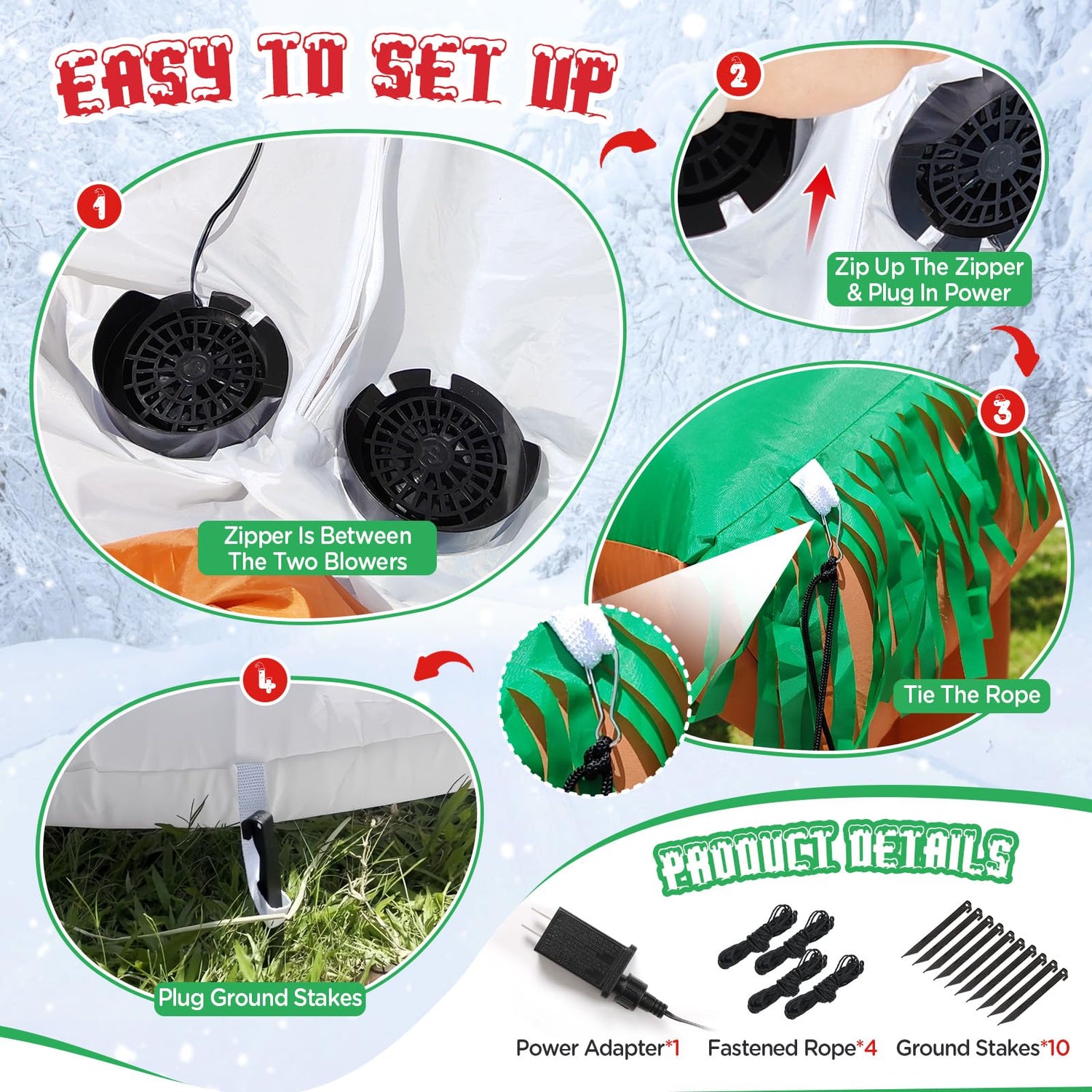 - Quick Inflation & Easy Setup – Simply plug in and watch it fully inflate within minutes. Includes powerful blower, ground stakes, and tethers for stable outdoor installation, plus easy deflation for compact storage after the holidays.