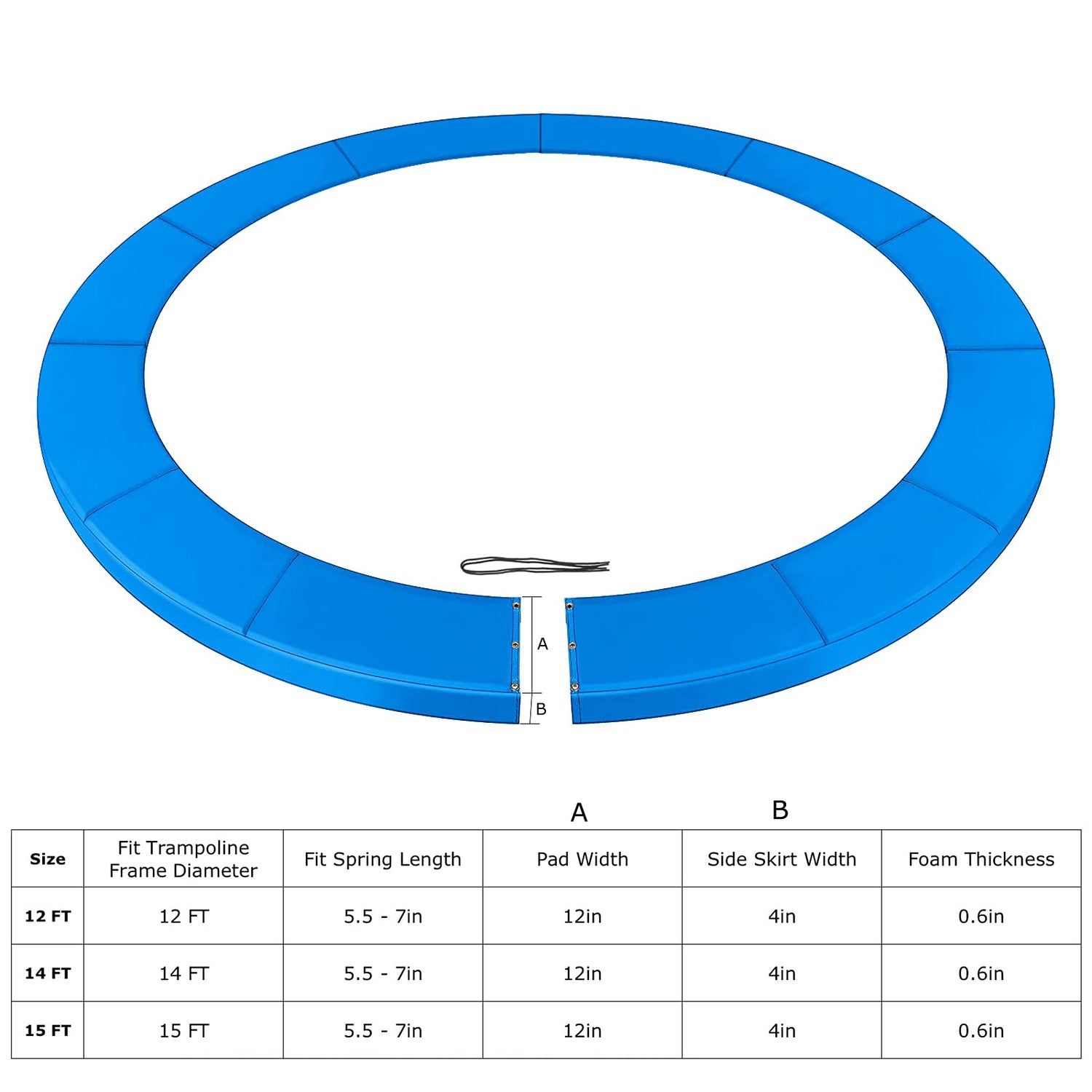 - Fit for 12FT Frame - 12” wide and 0.6” thick, designed to fit 12 foot trampolines with a maximum spring length of 7 inches.