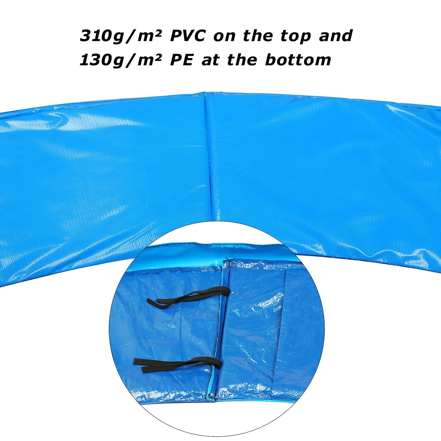 - Durable Material - Made with a soft, weather-resistant high quality PVC, 310g/m² PVC on the top and 130g/m² PE at the bottom make the trampoline pad waterproof, anti-uv and easy to clean.