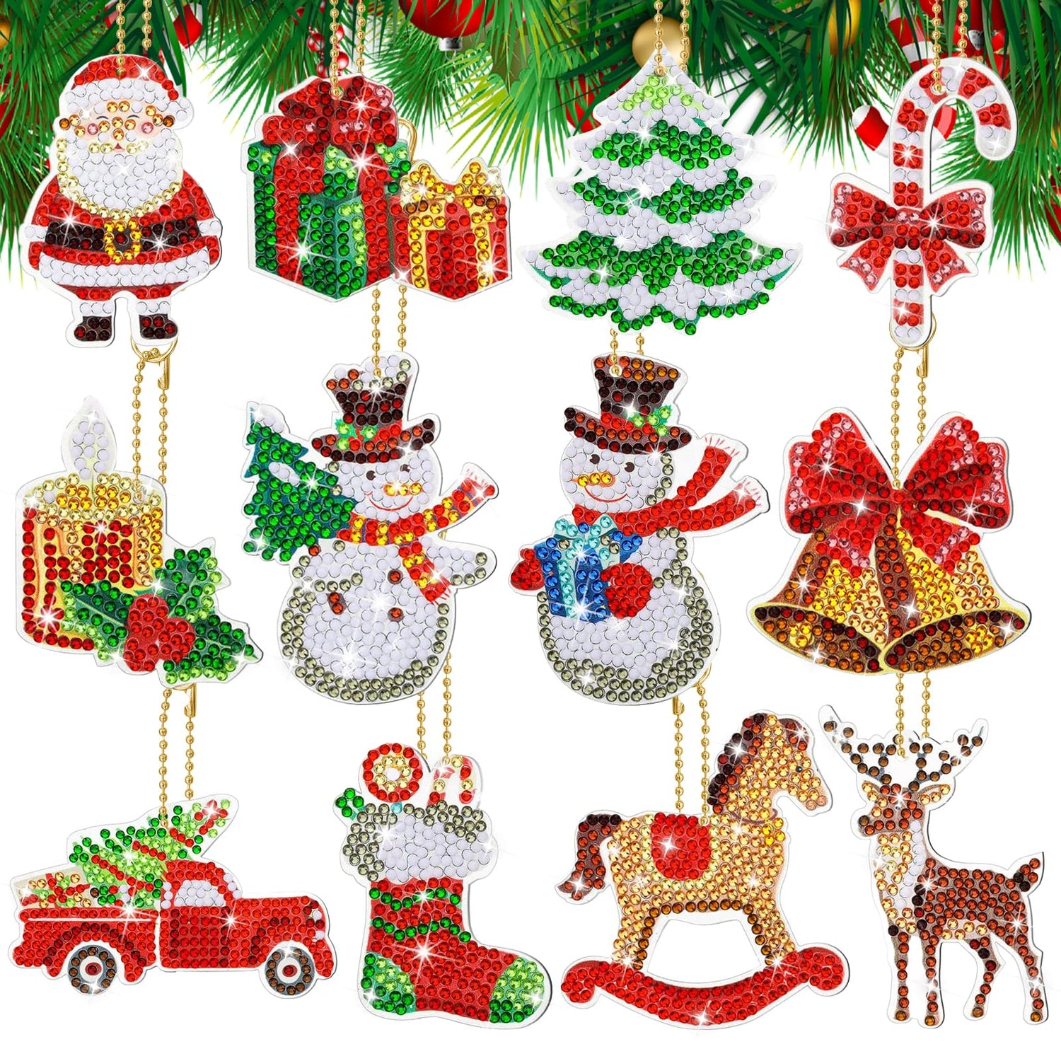 12Pack Christmas Diamond Art Ornaments Xams Diamond Painting Ornaments DIY Painting Keychain Kits for Adults Christmas Family Decor Hanging Kits