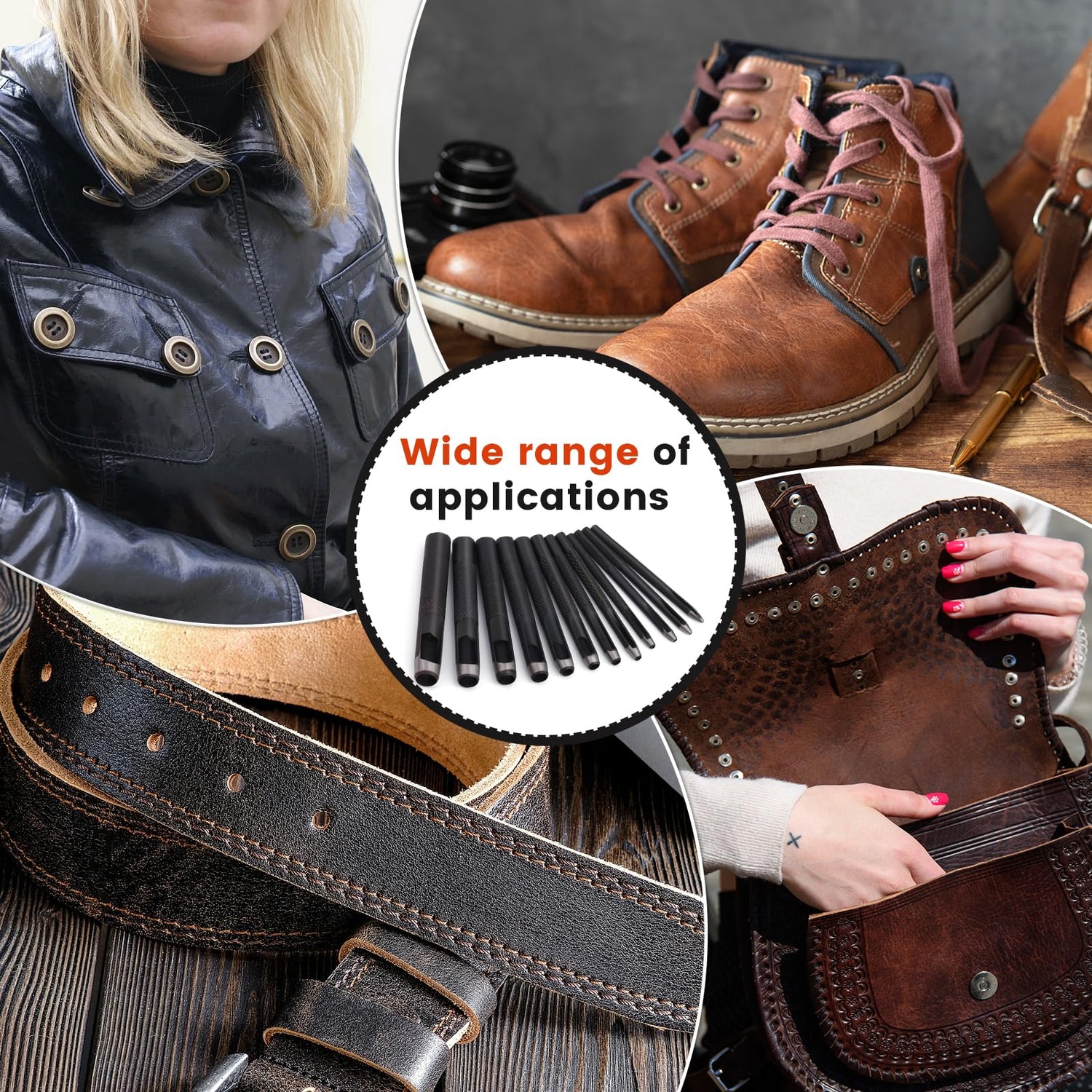 12PCS Leather Hole Punch - Round Steel Leather Craft Hollow Hole Punch, Cutter Tool for Watch Bands, Leather, Belts, Canvas, Paper, Plastics (1mm to 10mm)