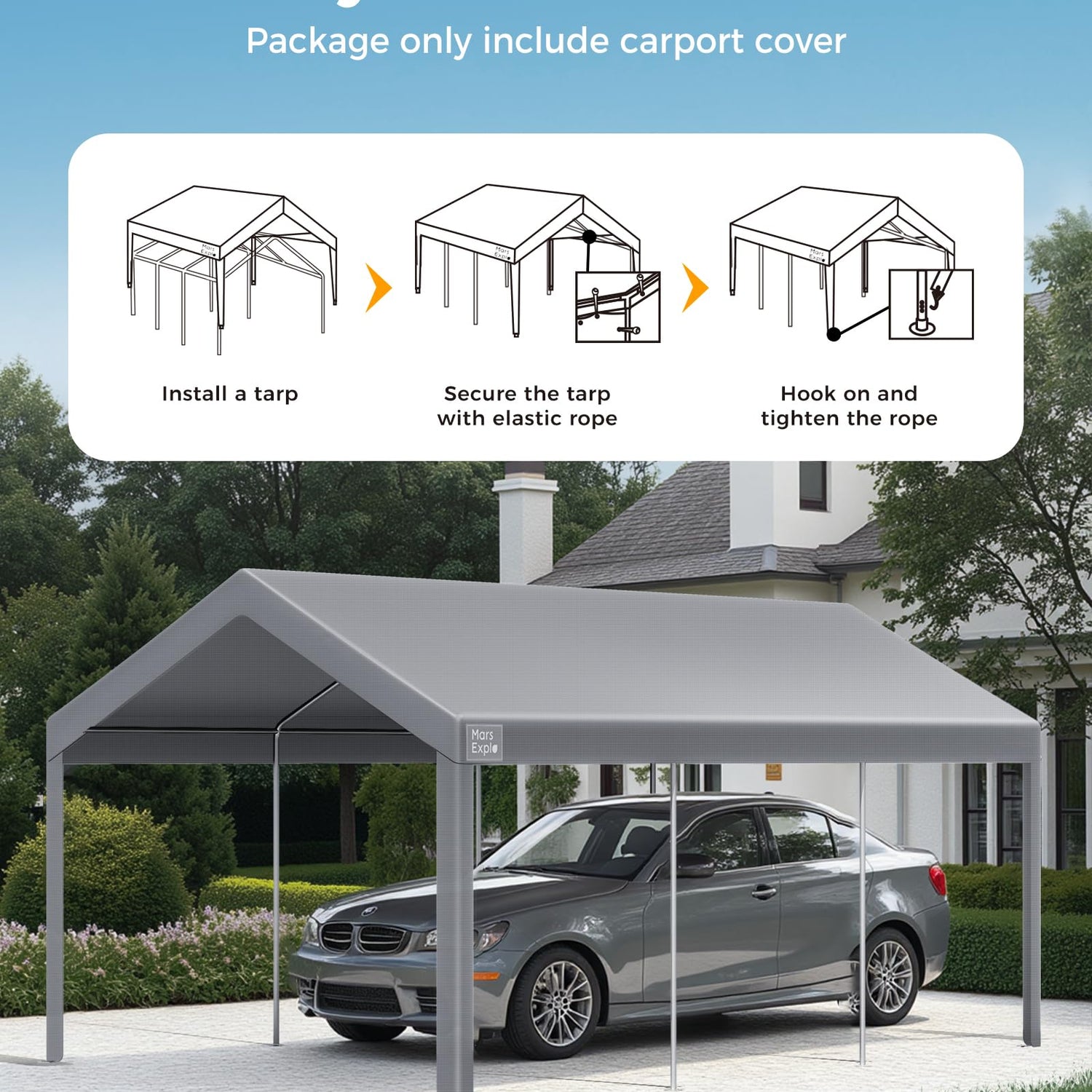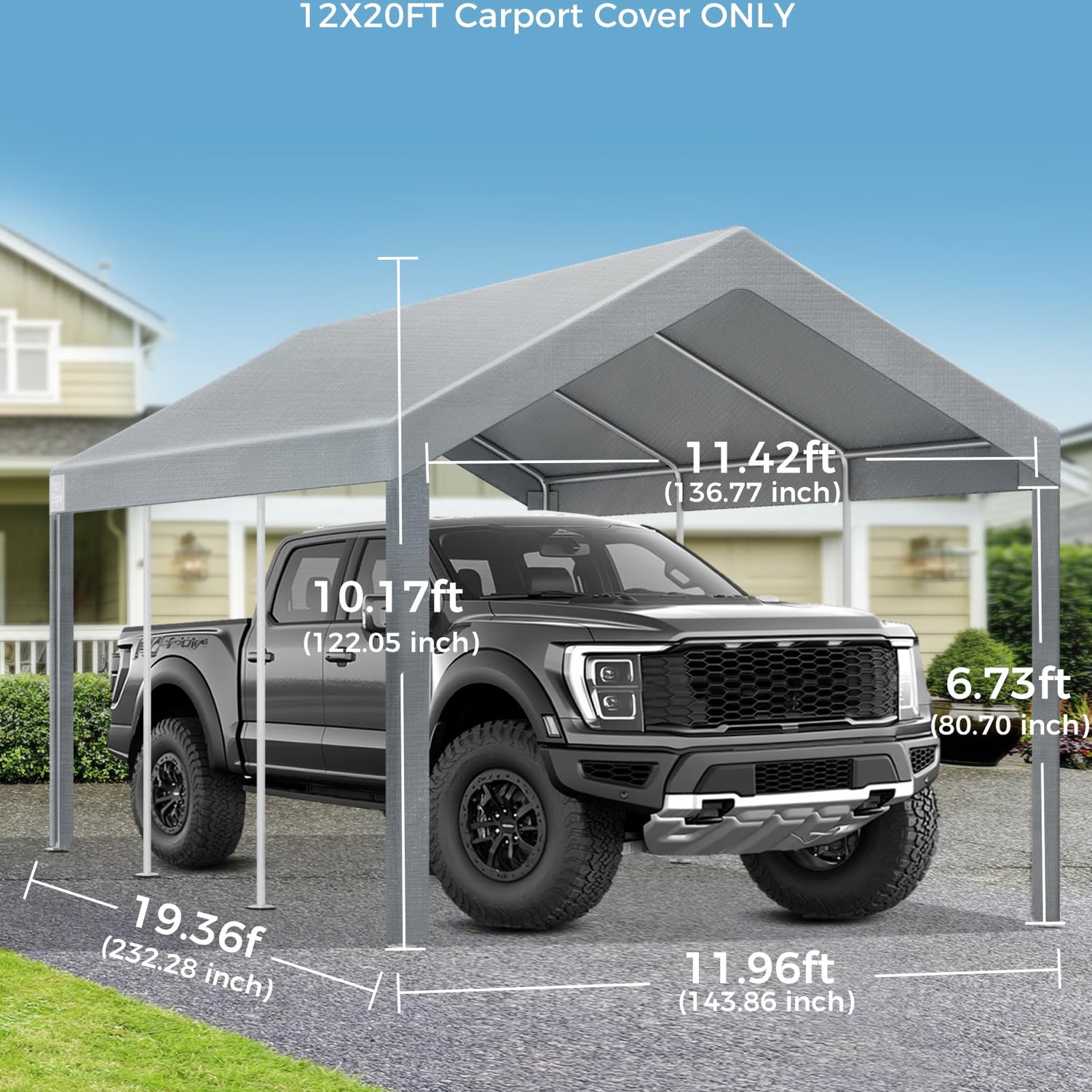 - Ample Protection for Vehicles and More: Our 12' x 20' carport replacement canopy cover provides ample coverage for a variety of uses, from protecting cars and boats to hosting outdoor events. The spacious design allows easy access for vehicles while shielding them from rain, sun, and dirt. Whether you're looking to protect your car or create a sheltered space for parties, this canopy has you covered.