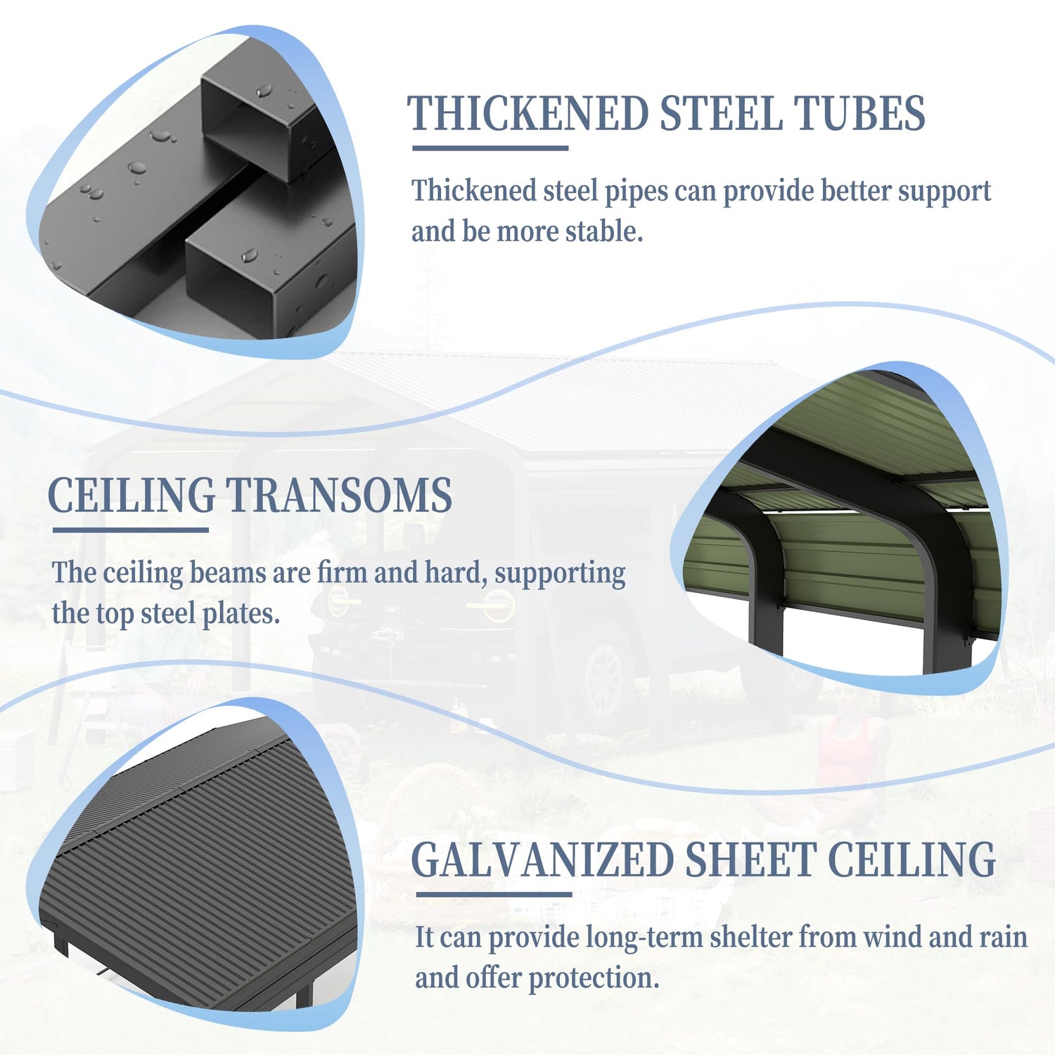 12x20 FT Metal Carport, Heavy Duty Car Port Canopy with Galvanized Steel Roof & Frame, Large Metal Carport Kit, Outdoor Car Garage, Steel Car Shelter for Car, Boat, Truck, Dark Gray
