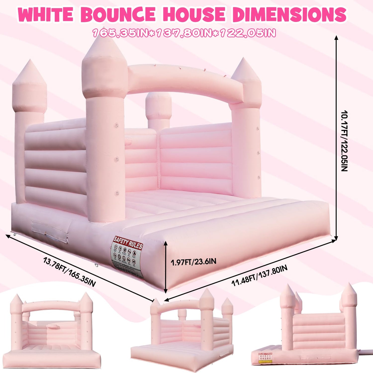 13.8FT White Bounce House Jump Castle for Kids, 100% PVC Indoor Outdoor Inflatable Bounce House, Heavy Duty 750W Air Blower Commercial Bounce House with 2 Balls, Self-Decorated for Party