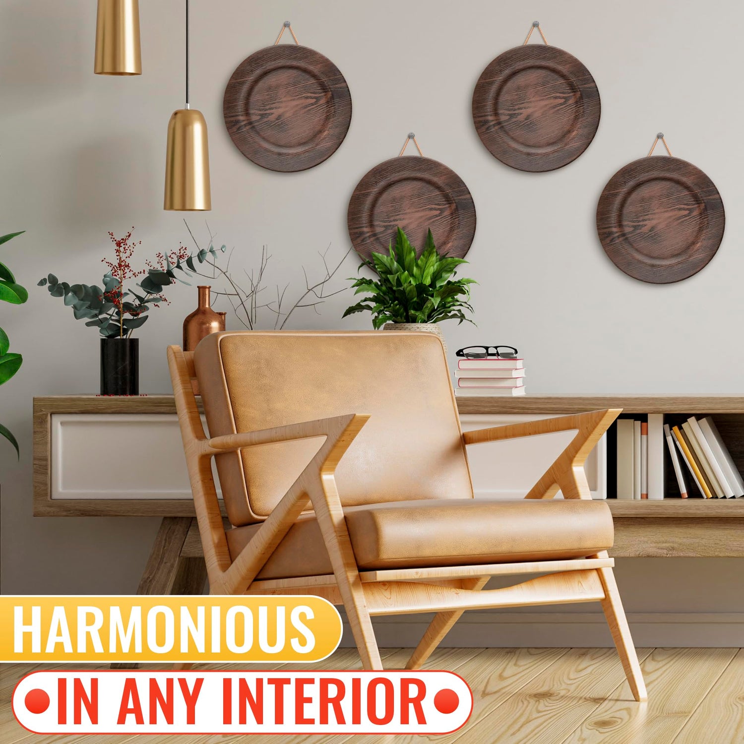 13'' Round Plastic Wood Charger Plates Set of 4 Chargers In Bulk Rustic Wood Round Table Charger Wedding Party Chargers Plate Set for 4 - 13 inch Rustic Kitchen Wood Plate Charger Wedding Table Decor