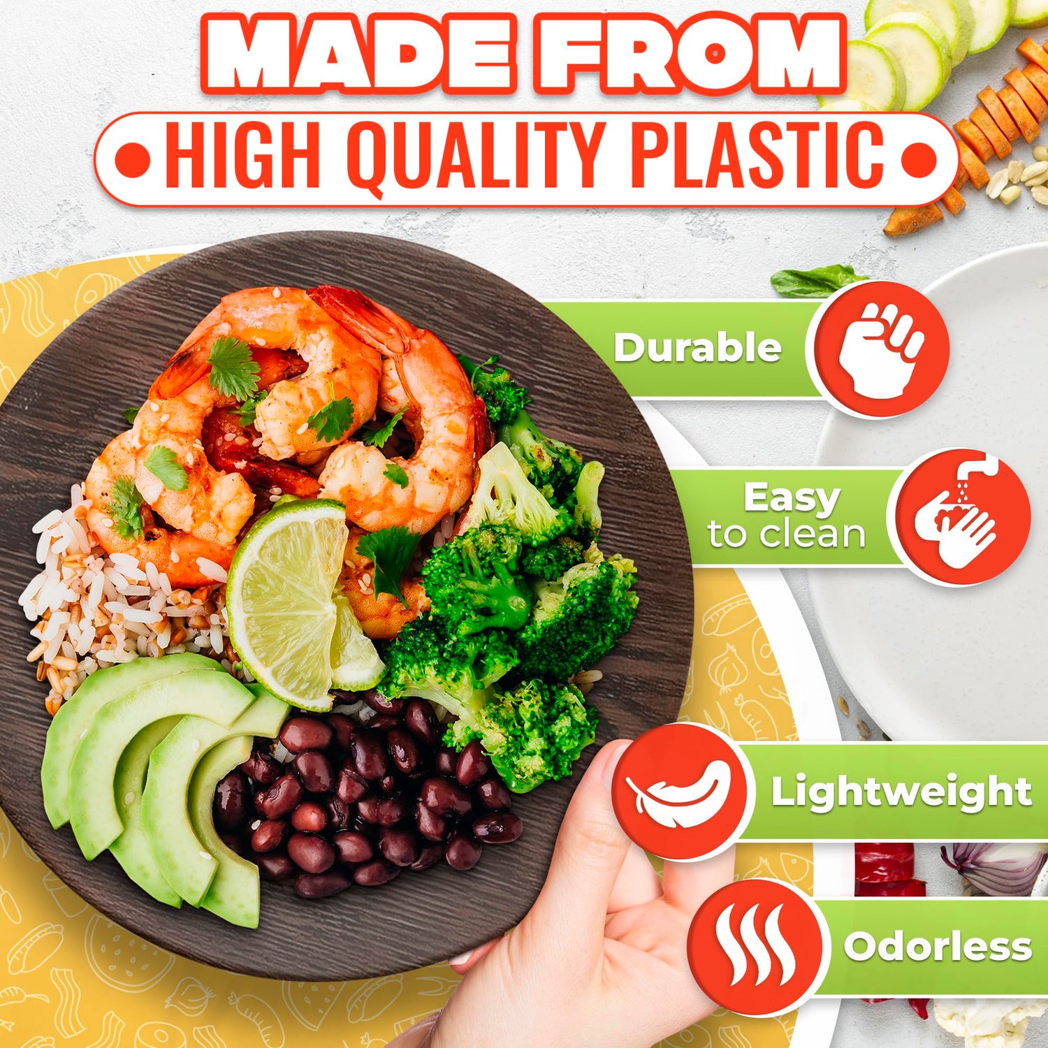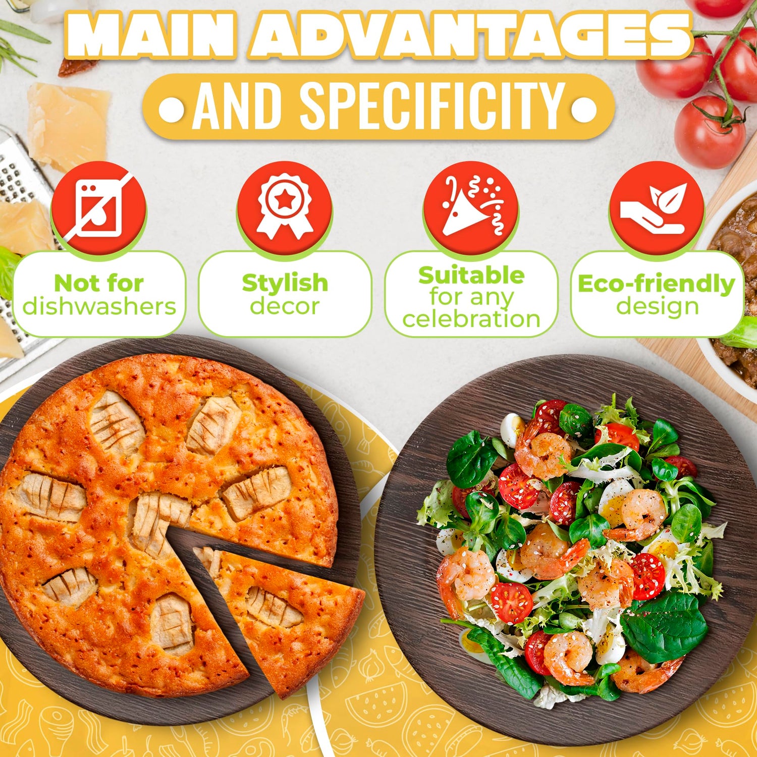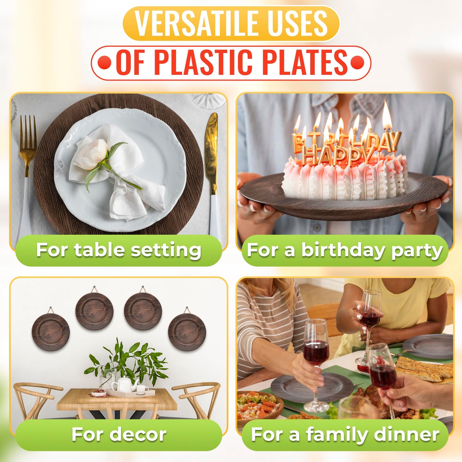 - Premium Quality Charger & Service Plates: This plastic plate set is made from high quality plastic material. Our plastic chargers dinnerware plates capture the essence of wood textures while offering the practicality of lightweight and durable plastic. These restaurant plates are not fade the color as it contain strong and sturdy material. These outdoor plates are perfect for a long time use. These wedding charger plates will surly enhance the visual appeal of your dining presentation.