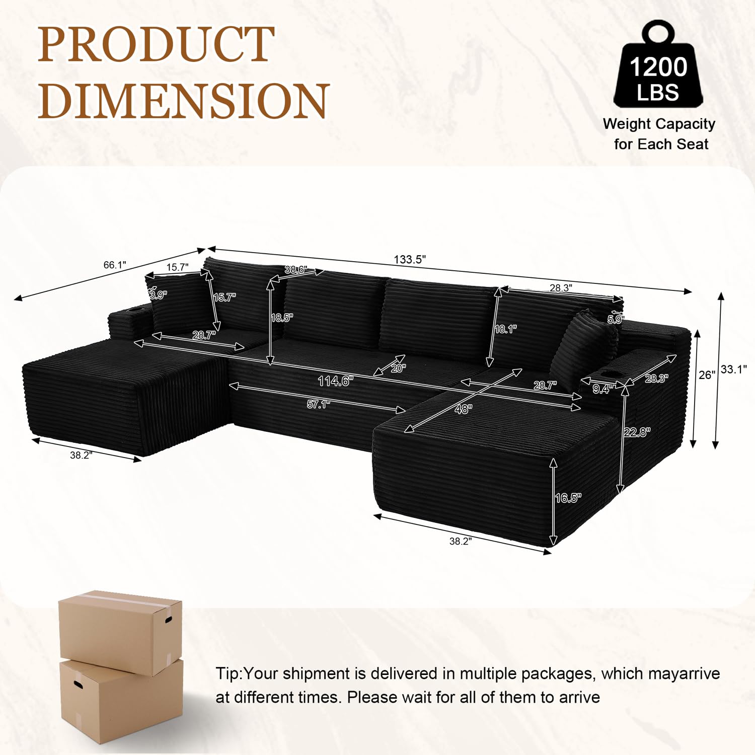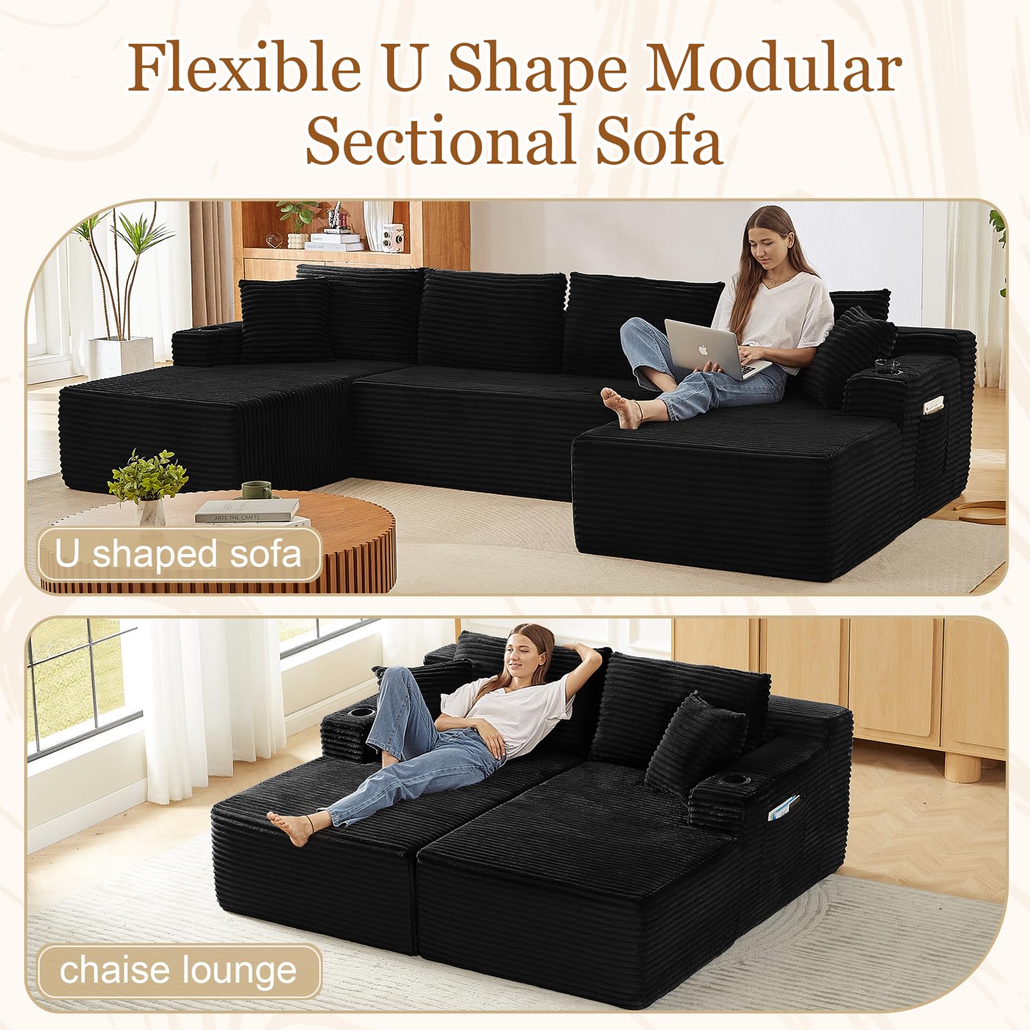 - No Assembly Required – Easy Setup, Immediate Comfort: Forget complicated assembly. This oversized modular sectional sofa ships in 2 packages for easier delivery and arrives ready to use—just unpack, gently pat the cushions, and allow 72 hours for full expansion. Enjoy a hassle-free setup and instant comfort.