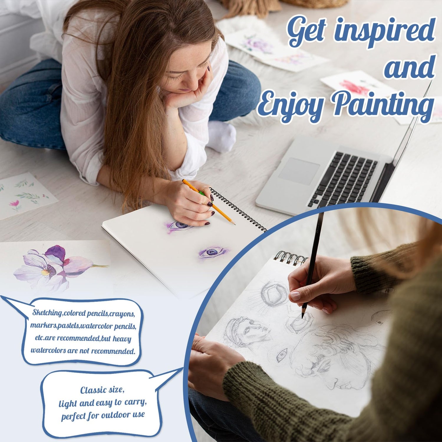 - 【Premium Marker Sketchbook】 Includes 8.3×8.9 inch marker sketchbook with anti-bleed marker pad (200gsm acid-free paper). Anti-warp design ensures a flat surface for markers, acrylics and pens. The compact size is perfect for studio, outdoor sketching or casual doodling