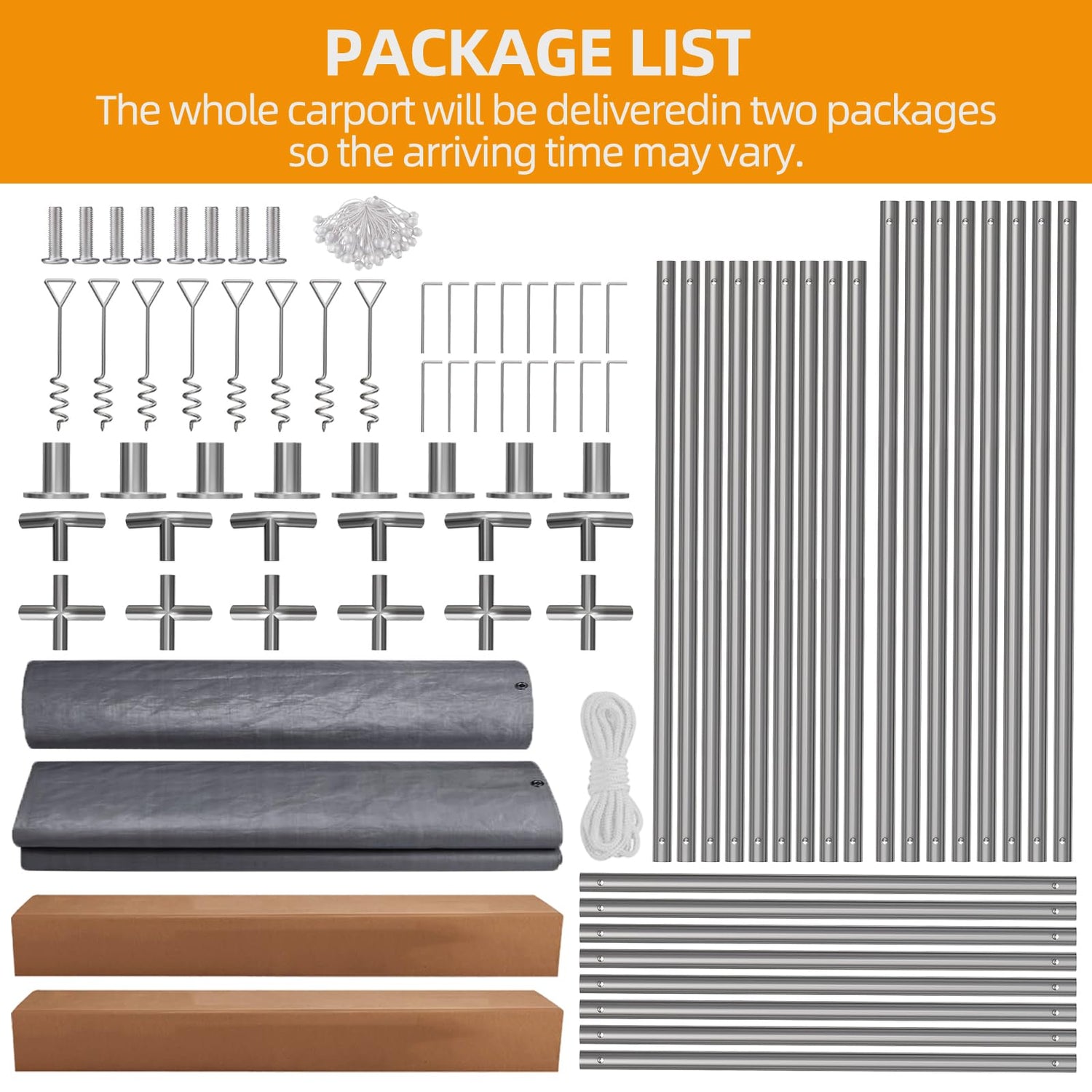 - All-Weather Canopy: The canopy is made from 180G all-weather PE material, which is waterproof and provides UPF 50+ protection against harmful UV rays. With a maximum load capacity of 800 pounds, it effectively shields your assets from wind and sun exposure, ensuring their safety.