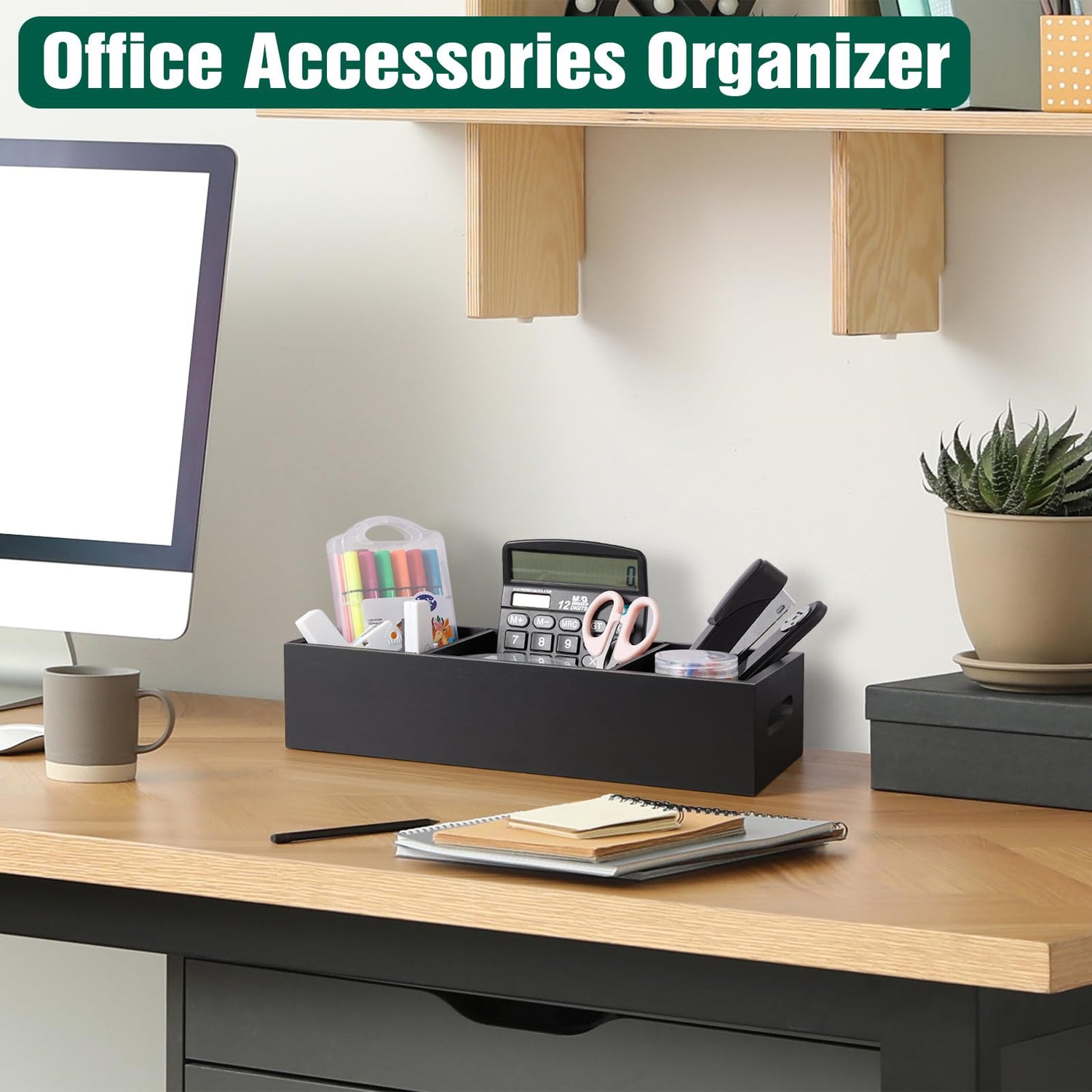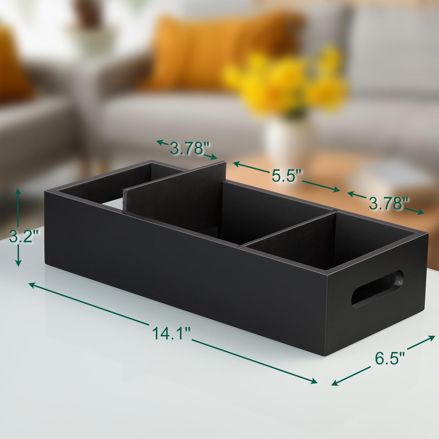 14 Inch Bathroom Basket with Removable Dividers - 3 Comparments Wood Toilet Paper Basket with Handle for Back of Toilet Tank Topper - Black Storage Organizer for Bathroom Kitchen Pantry Organization