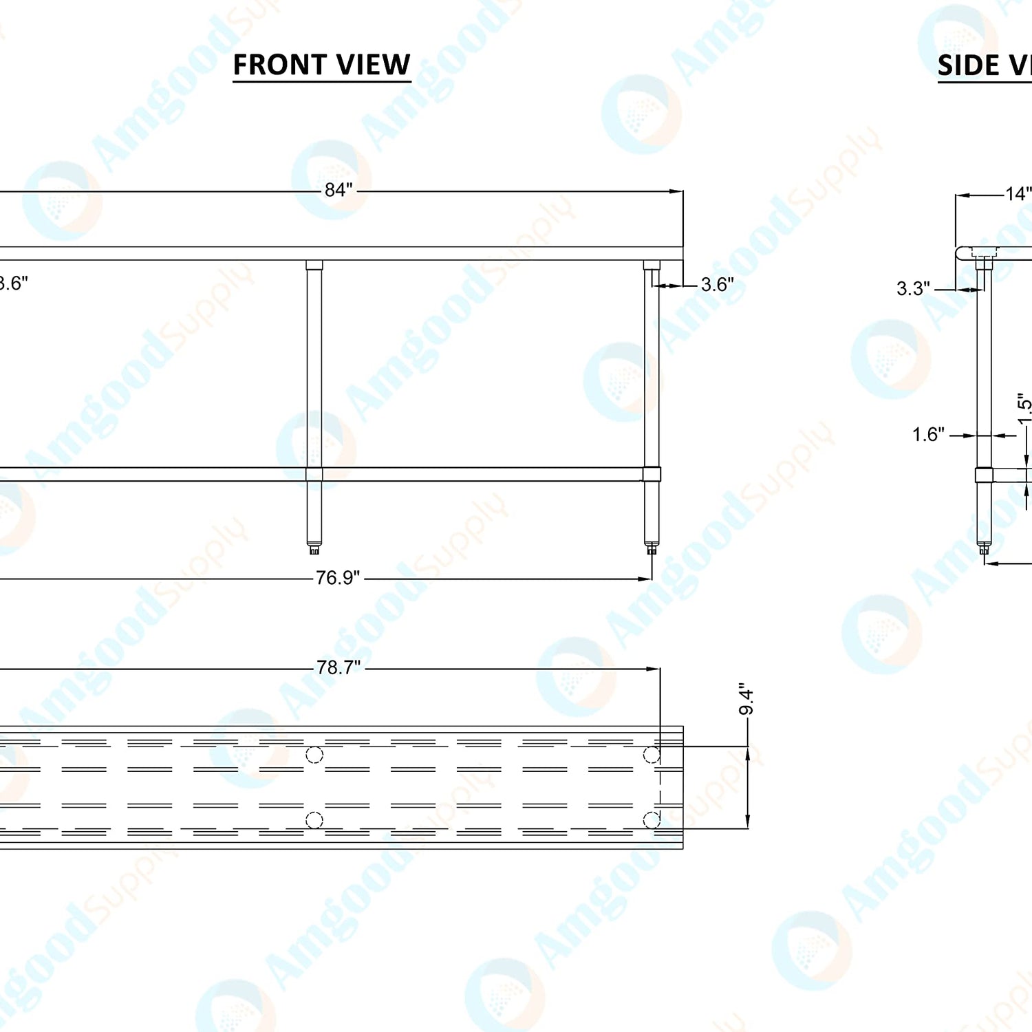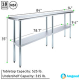 14" X 84" AmGood Stainless Steel Work Table | NSF Metal Prep Table | Commercial & Residential Kitchen Laundry Garage Utility Bench