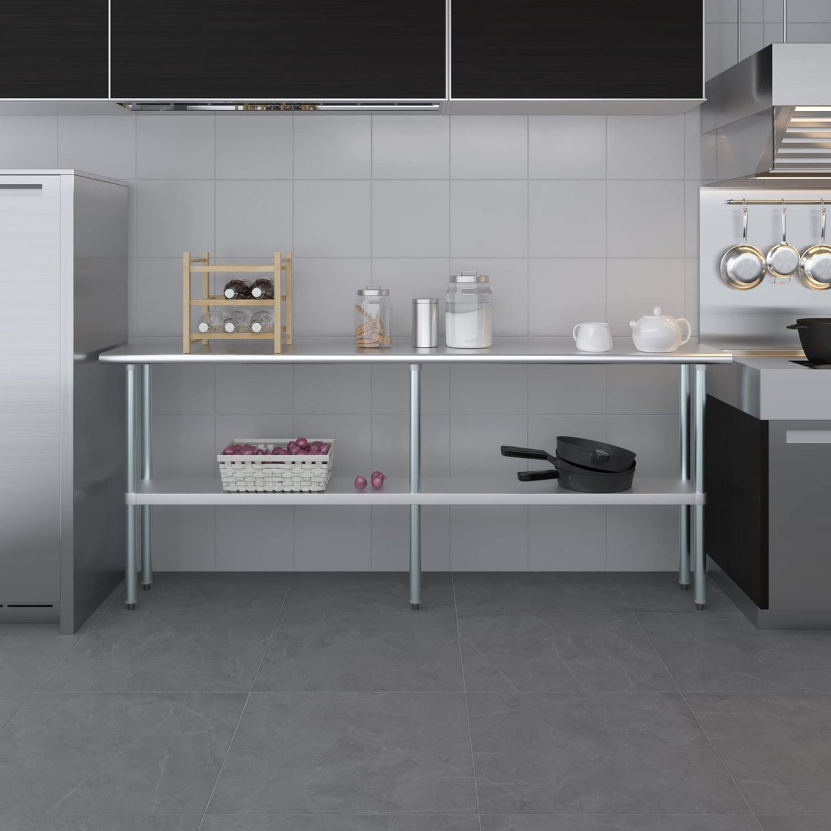 Details: A Stainless Steel Utility Work Table is a great addition to any home or business. It is perfect for a variety of tasks, including a workbench, prep table, or general-purpose table. The included bottom shelf provides additional storage space. Some assembly is required.