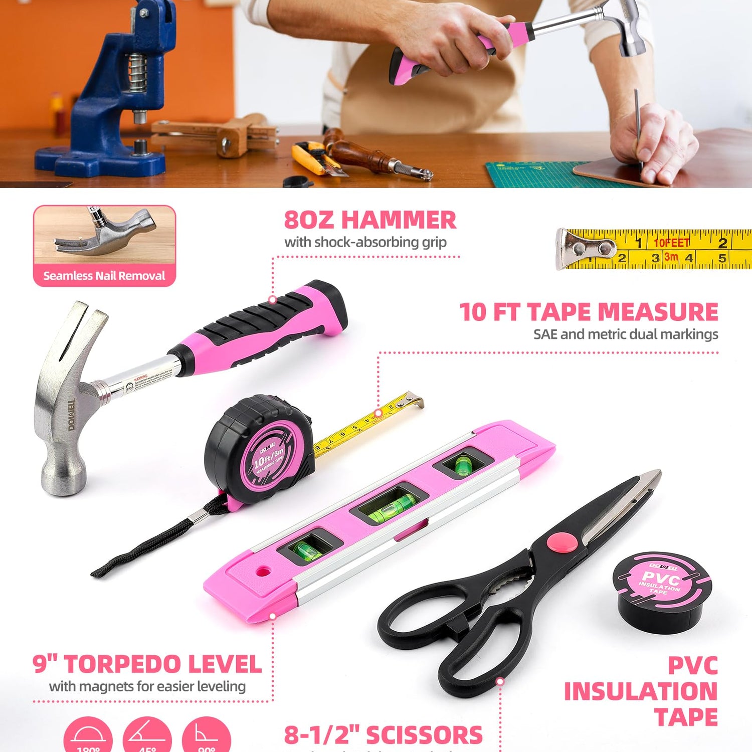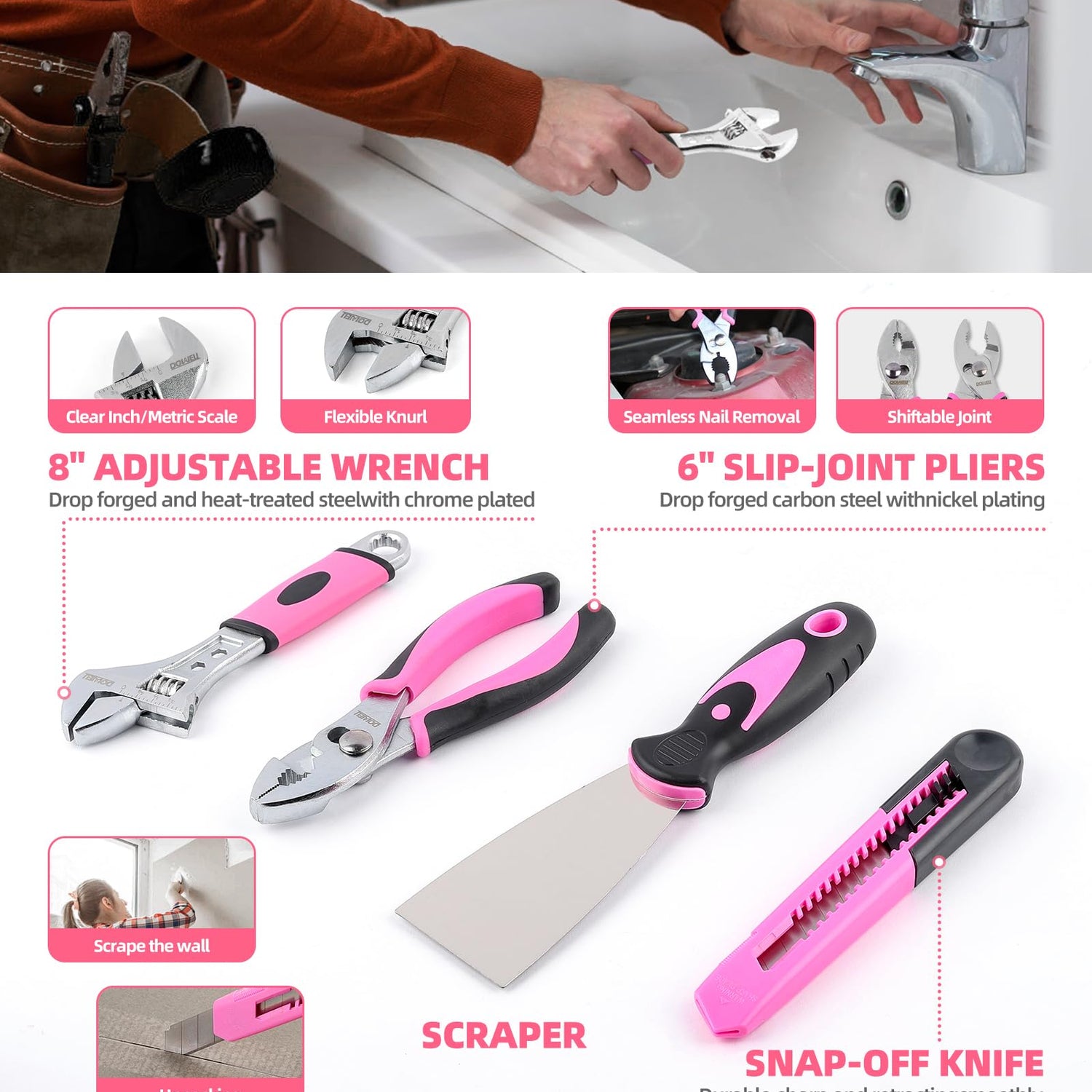 - GREAT GIFT IDEA: The lightweight home tool kit comes in a pretty pink color design, containing quick and simple repairs hand tools, which is a perfect gift for housewarming, college students or yourself.