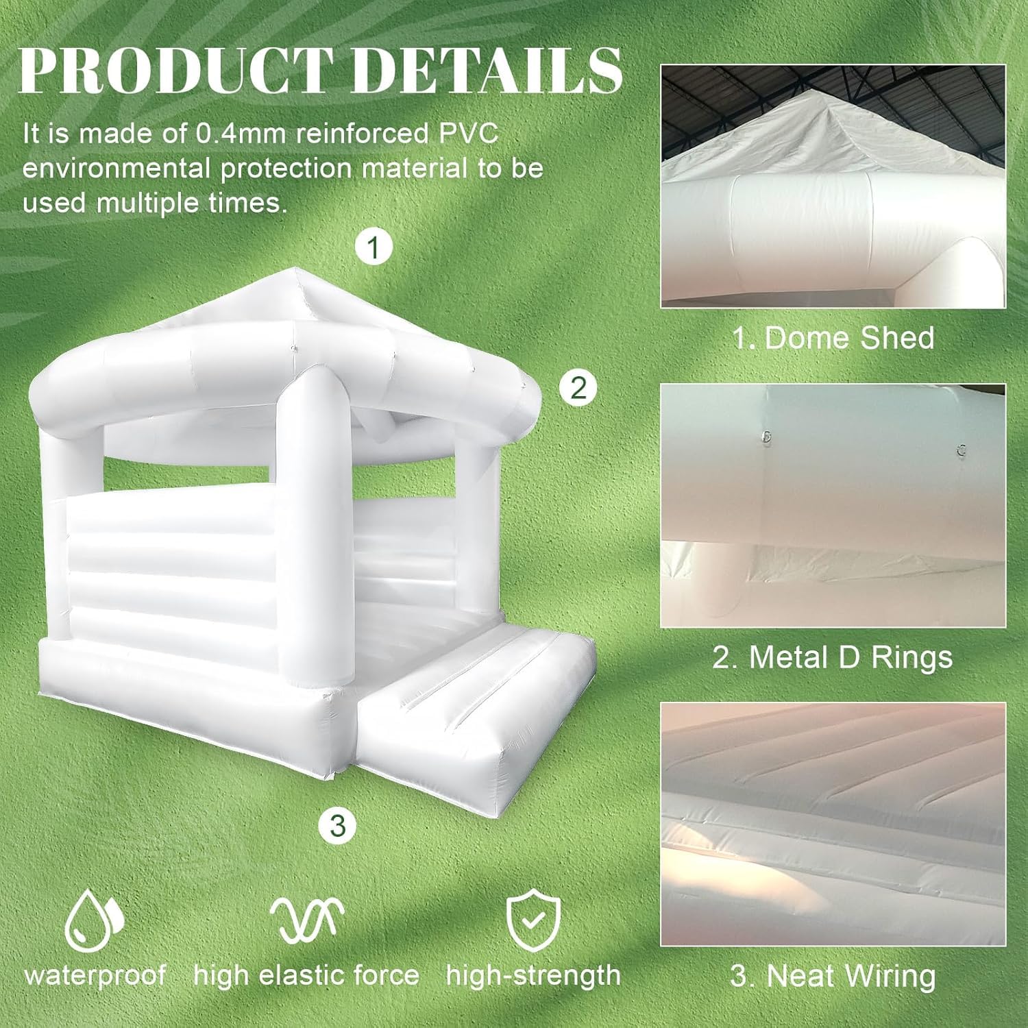 - ใ๐๐ ๐ฝ๐ก๐ค๐๐ & ๐๐ช๐ฃ ๐๐ฃ๐ ๐๐๐ฃ๐ ๐๐ง๐ค๐ฉ๐๐๐ฉ๐๐ค๐ฃใ Our white bounce house for adults specially designed a tall sunshine shade to block up direct sunlight exposure and strong wind but still breathe and keep you cooler and more comfortable in hot weather when you bouncing.Also it's waterproof,you can use it safely when rainy.Enjoy the fun of bouncing!