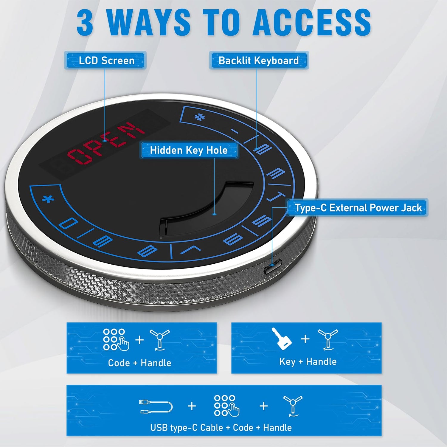 - 【Three Unlocking Methods】Choose from three ways to access your safe: 1. Password + Knob (ideal for daily use) 2. Key + Knob (for when you forget your password) 3. USB Type-C Cable + Password + Knob (if the battery runs out) Make sure to store your keys and USB Type-C cable in a secure place—don’t lock them inside the gun safe! These tools are essential for accessing the cabinet in case of power loss or forgotten passwords.