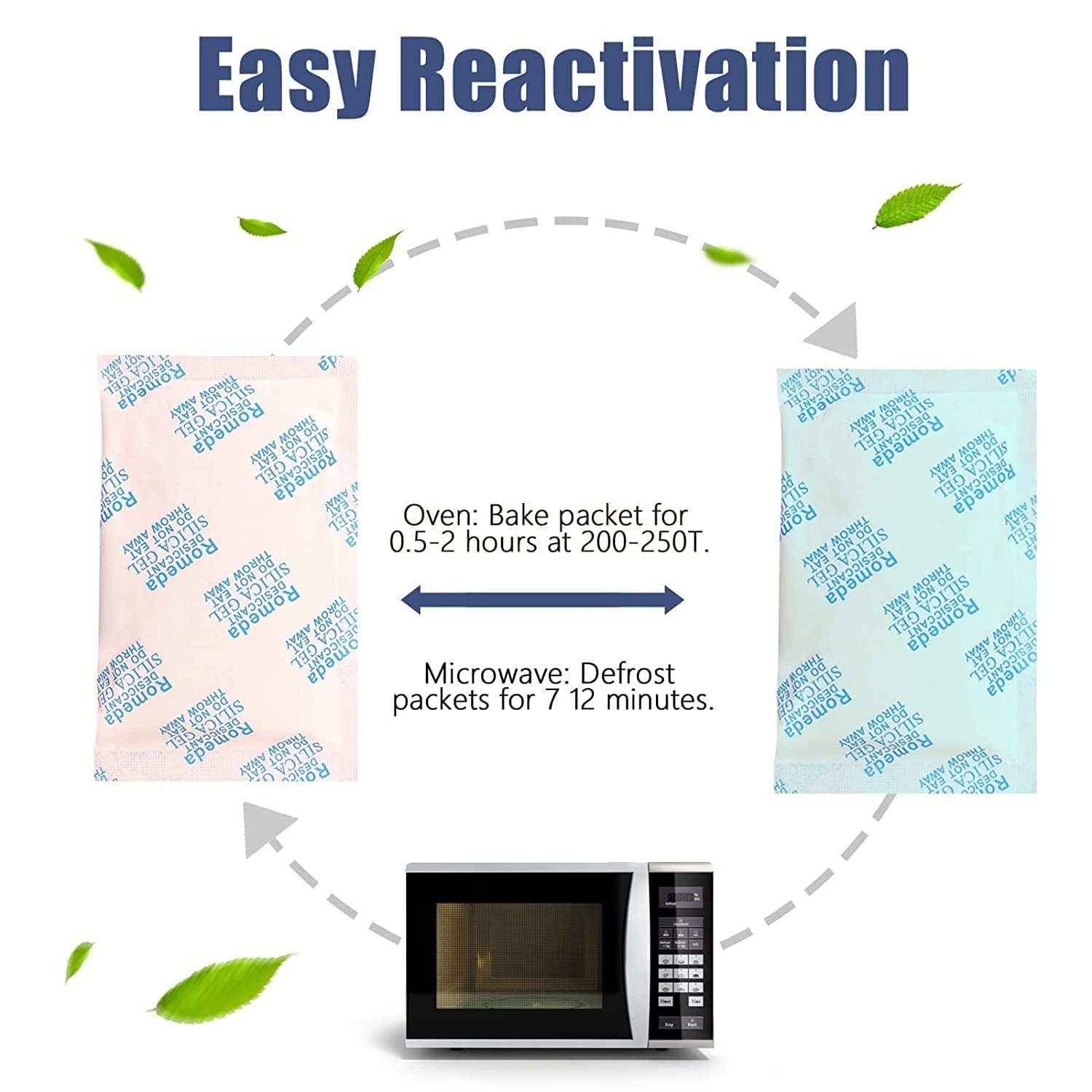 - RECYCLING: Easy Reactivation: Oven: Bake packet for 0.5-2 hours at 200-250T. Microwave: DEFROST Packets for 7 12 minutes.