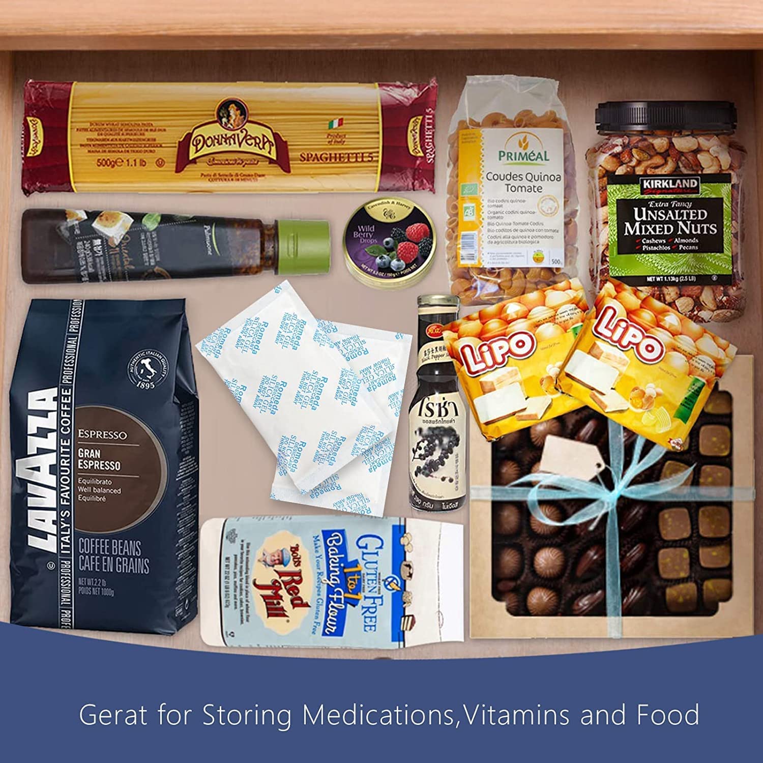 Details: 15 Pcs 20 Gram Silica Gel Packs, Transparent Desiccant, Desiccant Packets for Storage, Moisture Packs for Spices Jewelry Shoes Boxes Electronics Storage, Food SafeSilica Gel whisks away excess moisture to create a protective environment with dry air for safe storage, to prevent all forms of rust, corrosion, oxidation, mildew, fungus, mold, fogging, etc.ADVANTAGES:Excellent adsorption capacitySafe and non-toxicReactivationWidely usedSPECIFICATIONS:Material: Silica GelsColor: 100% TransparentPacking: 20 Gram x 15 PacksTIPS:1. The silica gel packets are not designed for open environments, for maximum effectiveness, use them in sealed jars, bags, boxes and bottles, etc.2. Use a larger amount than suggested if the water content of the storing goods is high.