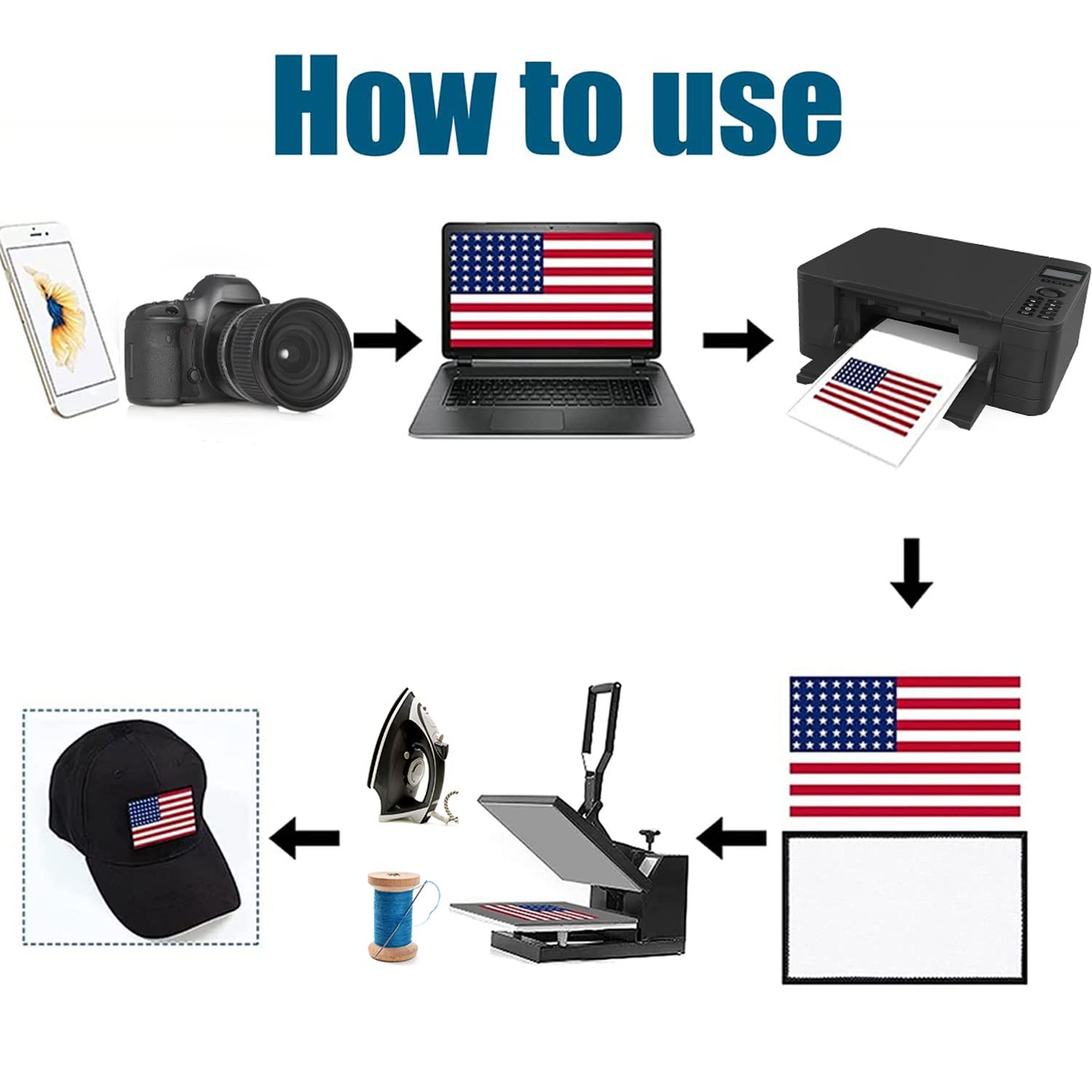 - Easy to use: you can first print the patterns you want on the smooth surface of the sublimation blank hat patches, then put the patches on the clothes, and iron the patches with hot machine; The patches have high temperature glue, which can be served to make the patches quickly to be stuck to your clothes