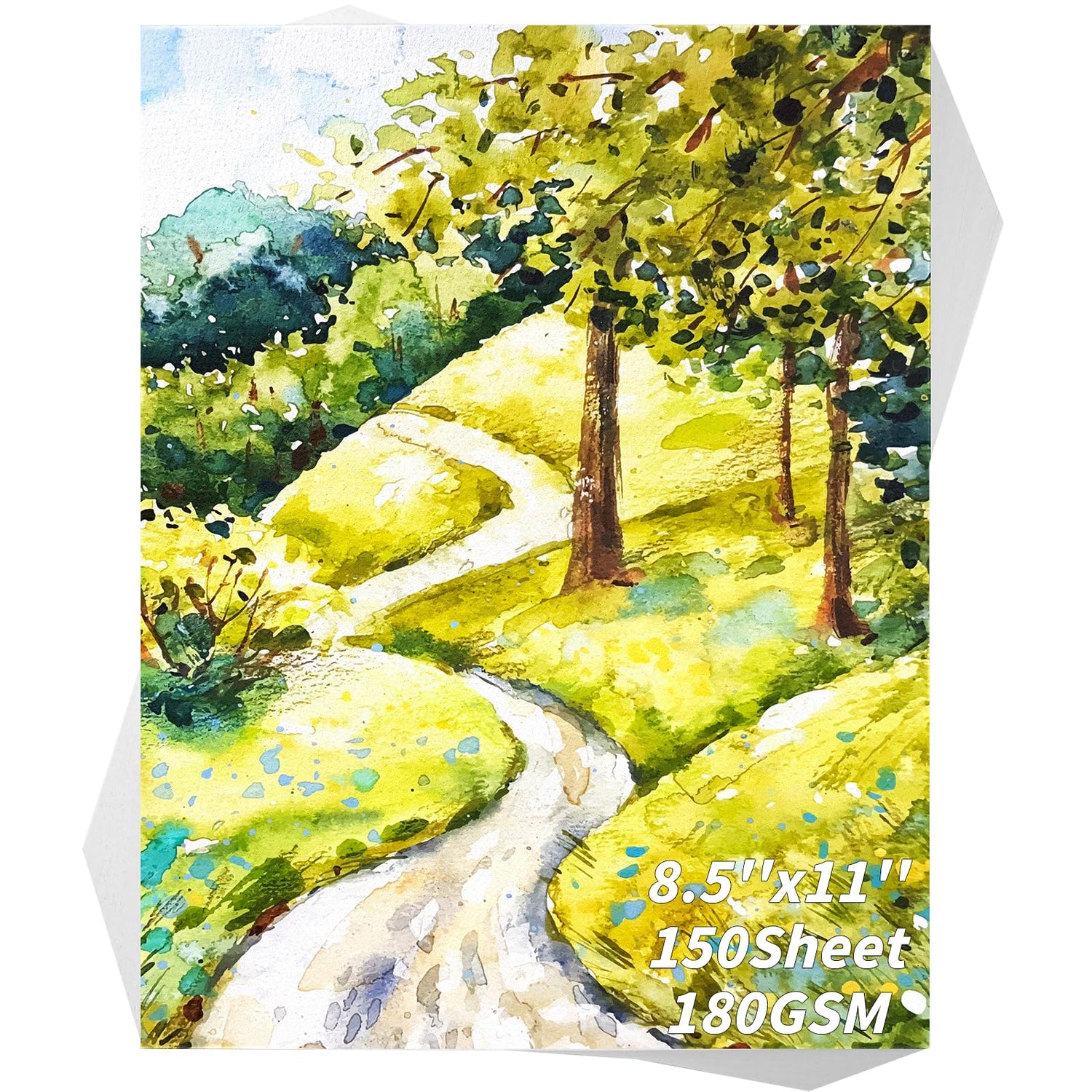150 Sheets Watercolor Paper Bulk,White Water Color Paper for Kids Child Students Adults Artists Drawing-65LB/180GSM Art Paper-8.5 x 11 inch Painting & Craft Paper, Finger Paints, Watercolor, Tempera