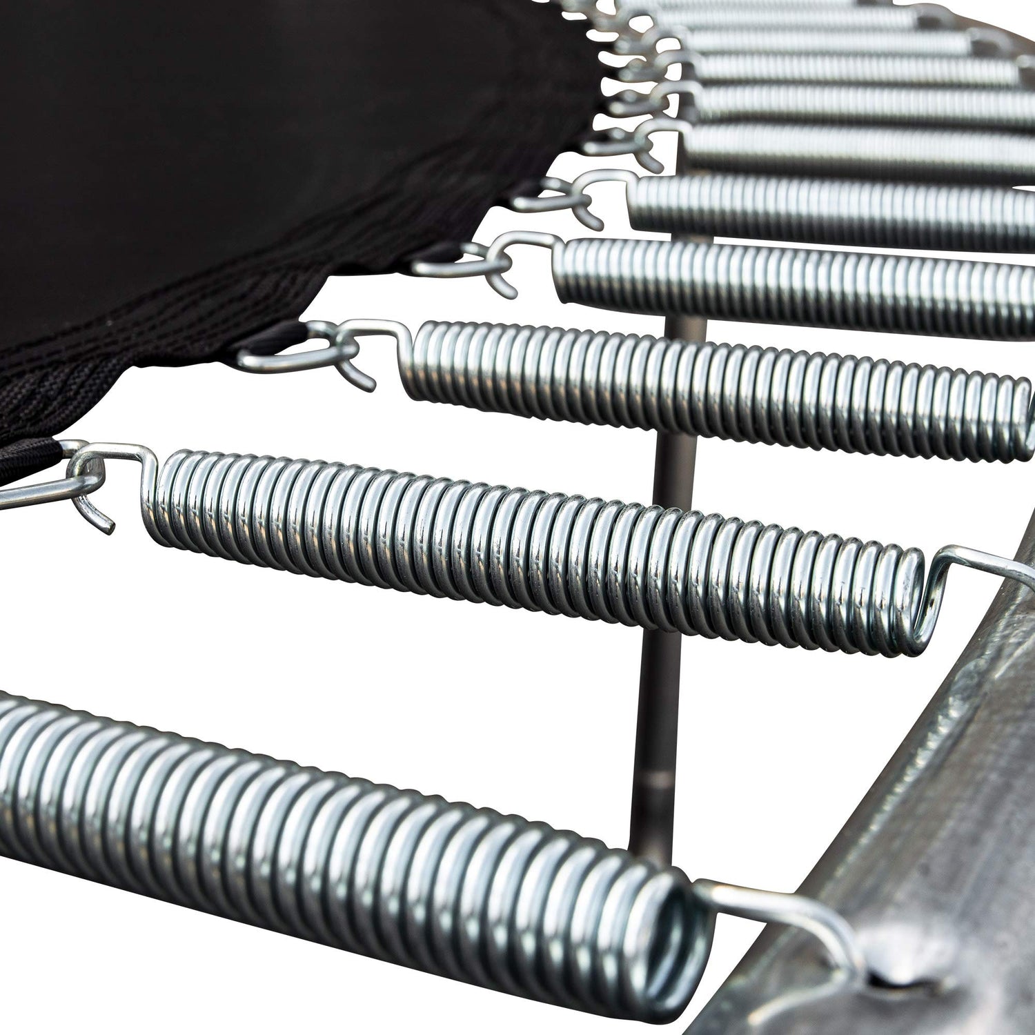 6. Pads over the spring and frame reduce the severity of impact injuries. Keeping the springs covered also reduces the risk of a limb falling between the gaps in the springs and the rest of the body falling off the trampoline.