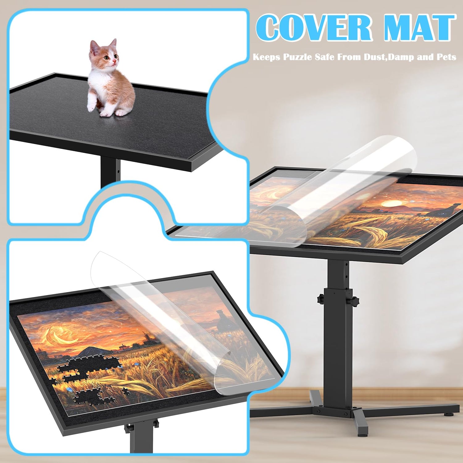 1500 Piece Jigsaw Puzzle Table with Leg, Metal Jigsaw Puzzle Table Adjustable Angle & Height,4 Trays and Semi Transparent Puzzle Cover, 28"x35" Jigsaw Puzzles Table for Adults and Kids Birthday