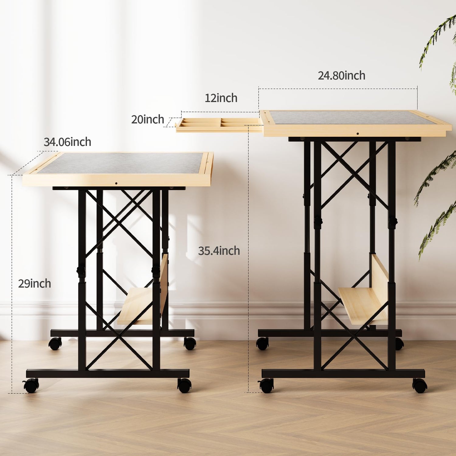 - 【Adjustable Angle and Height】 The tabletop of the puzzle table offers 5 adjustable angles, and its height can be adjusted from 27.6 inches to 34.7 inches. This design ensures that you can find the most comfortable angle and height to complete your work, relieving pressure on your neck and back