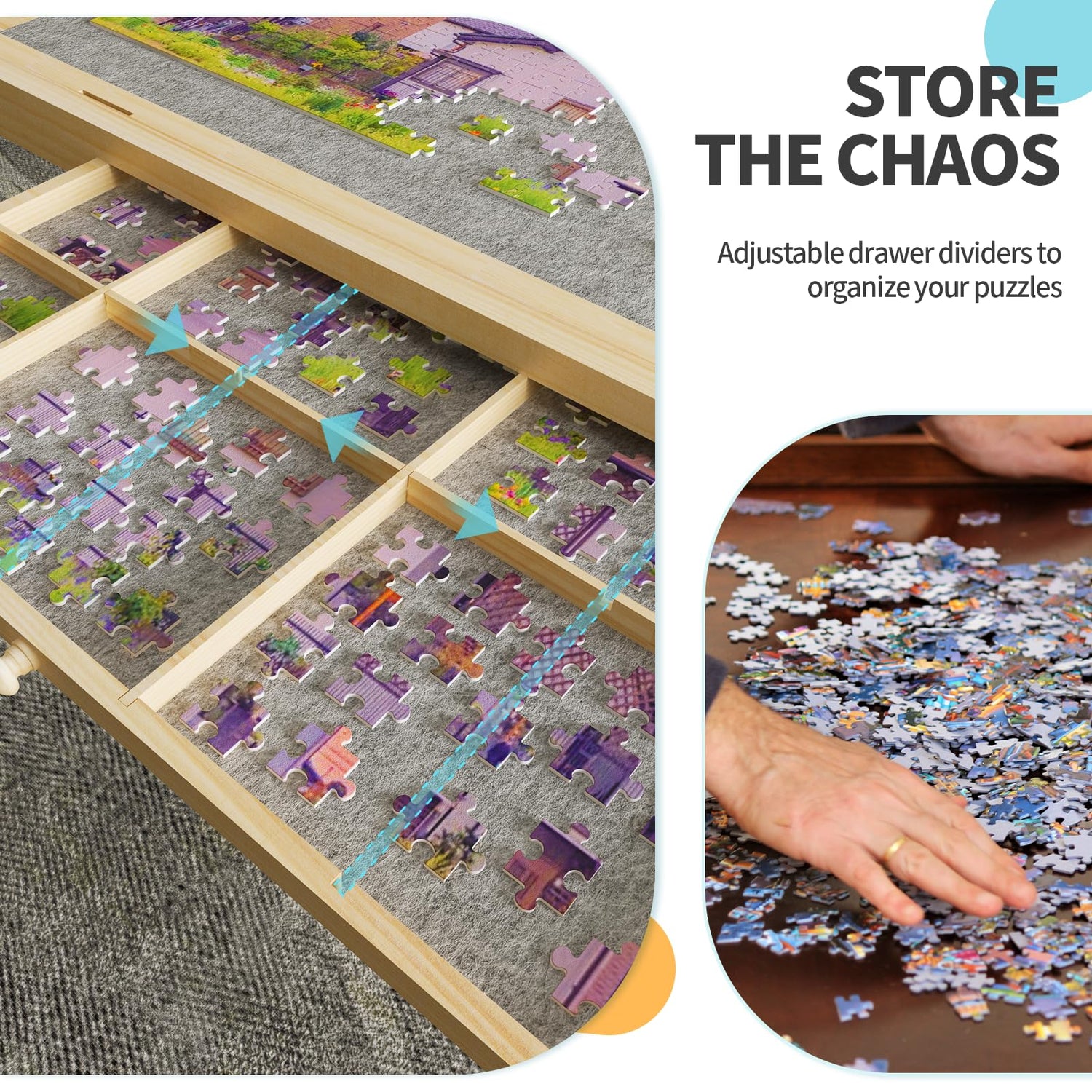- 【Adjustable Divider Drawers】 The puzzle table for adults features two drawers with adjustable dividers, which can be separated into up to 12 individual sections. You can reposition the dividers to create custom compartment sizes, making it easier to sort and organize puzzle pieces effectively
