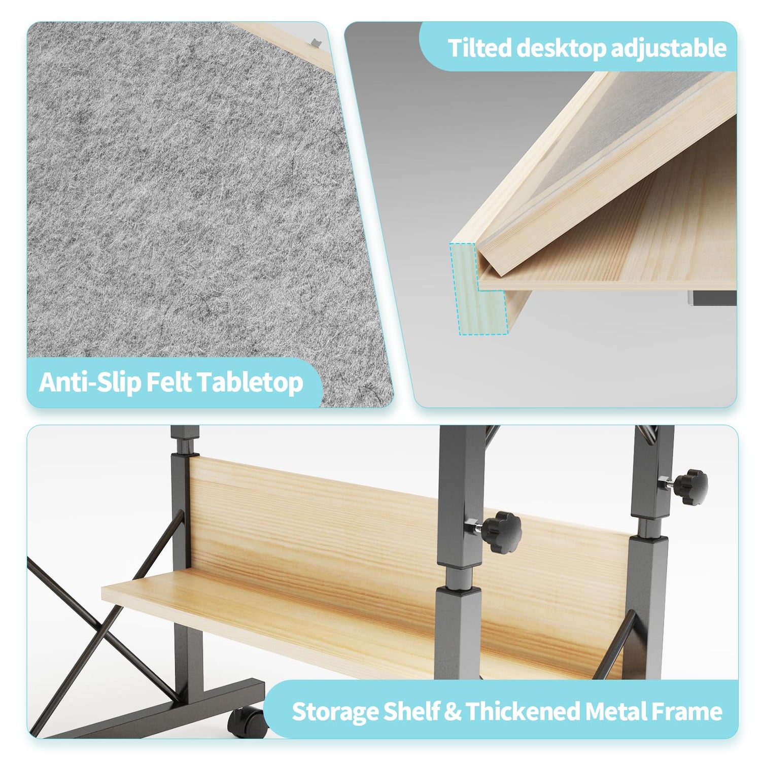 - 【Storage Shelf and Lockable Casters】 The adjustable puzzle table comes with a storage shelf beneath the tabletop, providing space for storing your favorite puzzle accessories or unfinished puzzles. The proper width of the boards ensures unrestricted movement for your legs. The table is equipped with four casters, two of which can be locked, allowing you to move the table effortlessly to your desired location