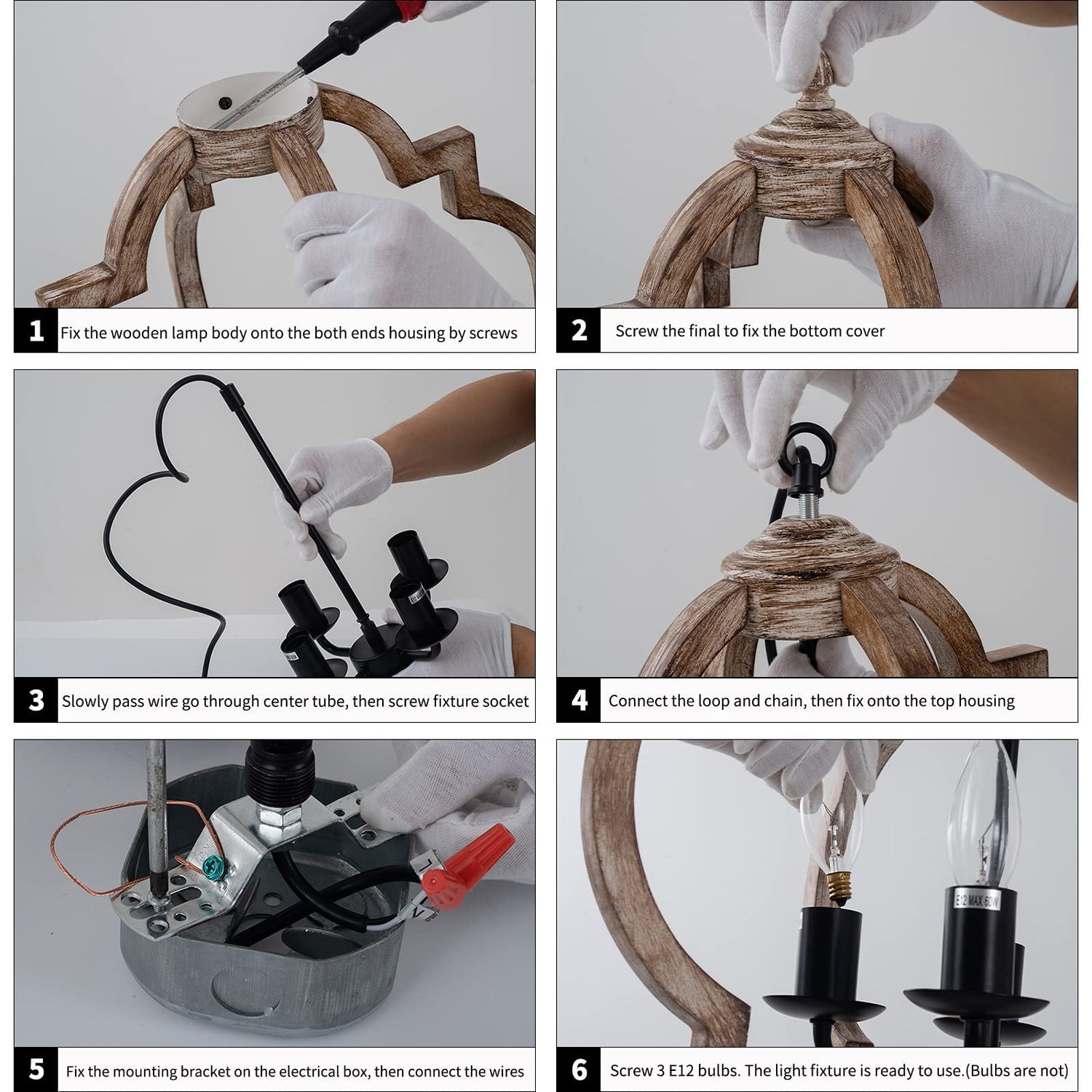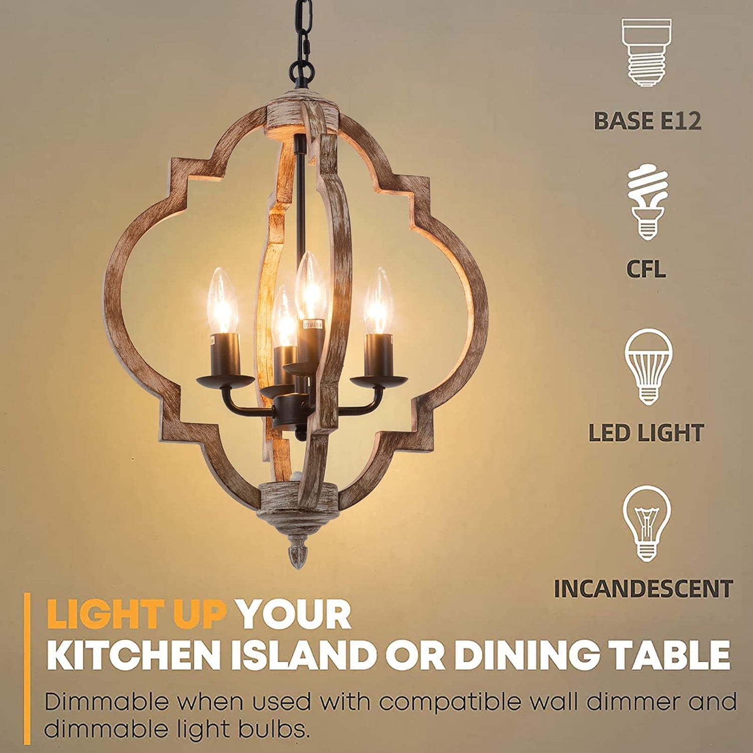- 【Unique 4 E12 Bulbs Design】This lovely farmhouse chandelier requires 4 Max 60W E12 bulbs (bulb not included). Compatible with all kinds of bulbs: LED, incandescent, CFL, halogen, etc. This kitchen light will be fully dimmable with a compatible dimmer switch and dimmable bulbs (for safe transportation, not came included). This rustic hanging ceiling lamp is bright enough, supplying dreamy illumination from the fascinating focal point on your ceiling