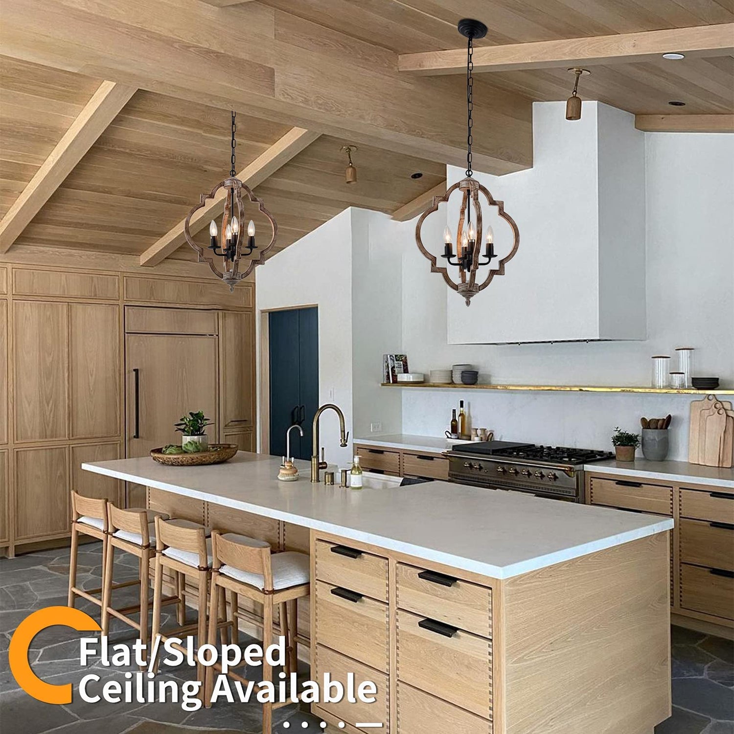 - 【Adjustable Height】The kitchen lighting shade is 16.14" wide, 19.3" high and the canopy is 5.3". The retro chandelier is equipped with a chain adjustable up to 39.3", which gives maximum flexibility in hanging heights according to your preferences and design. This rustic farmhouse chandelier is also compatible with any type of ceiling like the flat, sloped, or vaulted ceiling