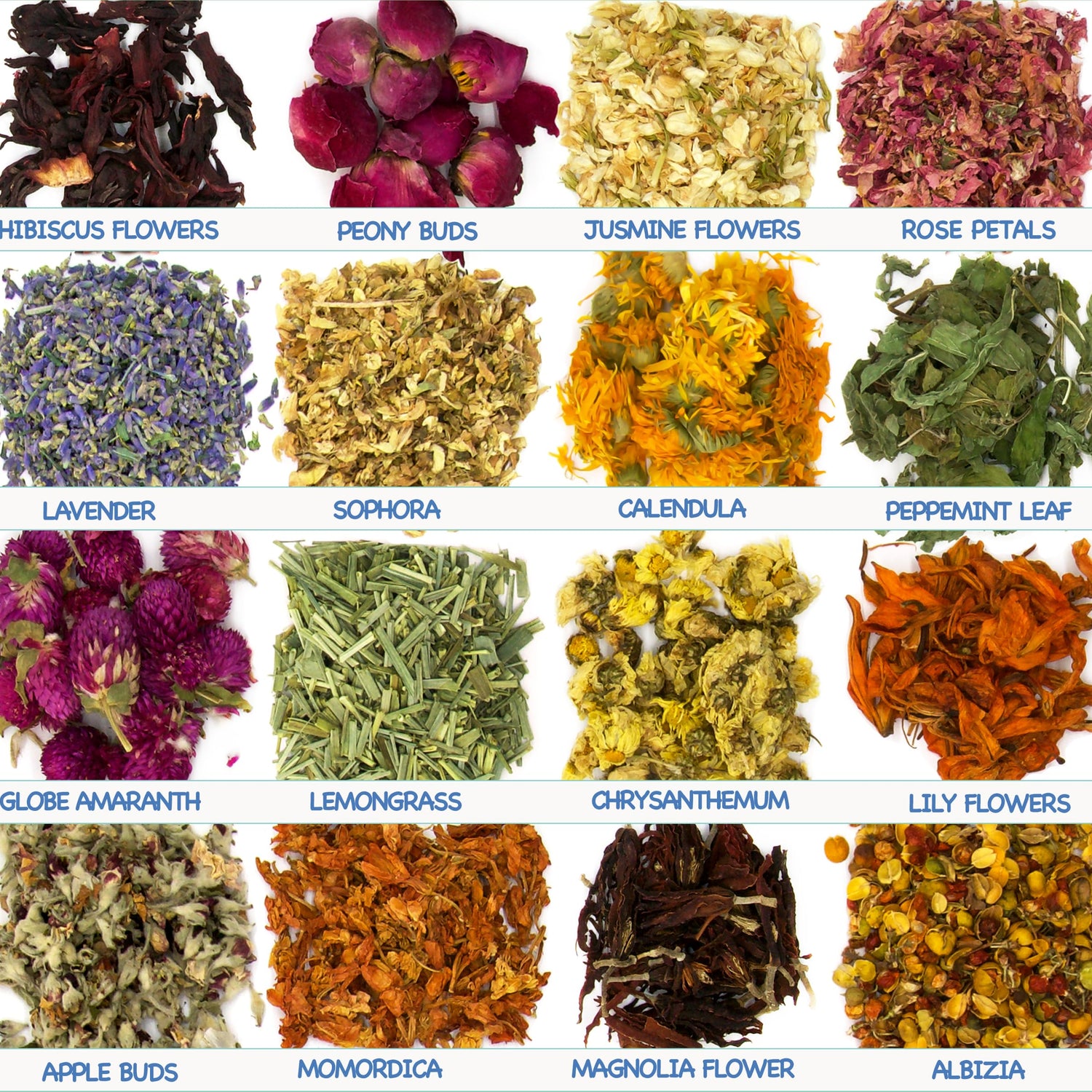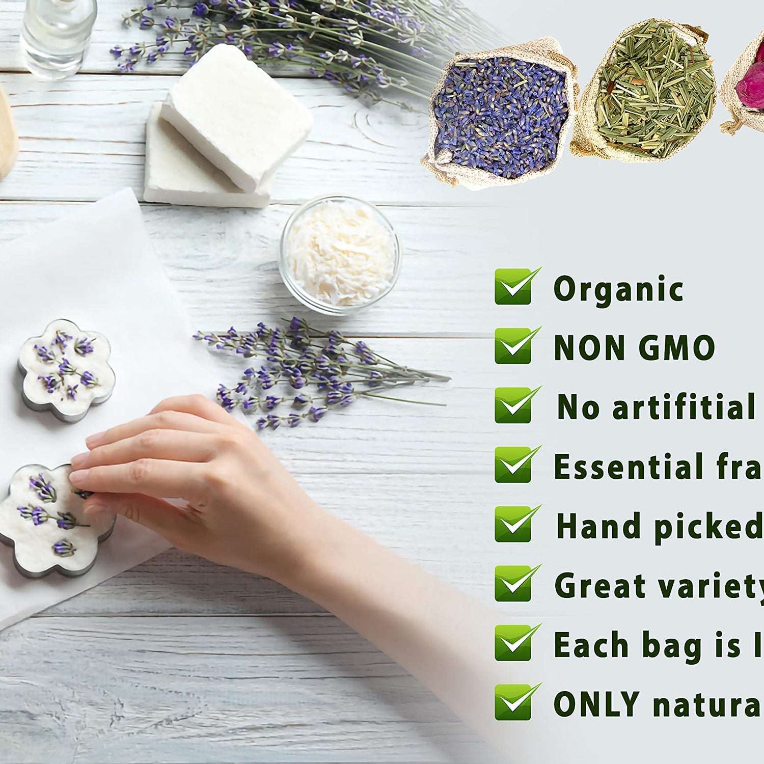 16 Bags Dried Flowers for Soap Making, Dried Flowers for Candle Making, Soap Flowers and Dried Herbs for Candle Oil, Bath Bombs. Essential Fragrant – The Best Variety of Grade A Flowers