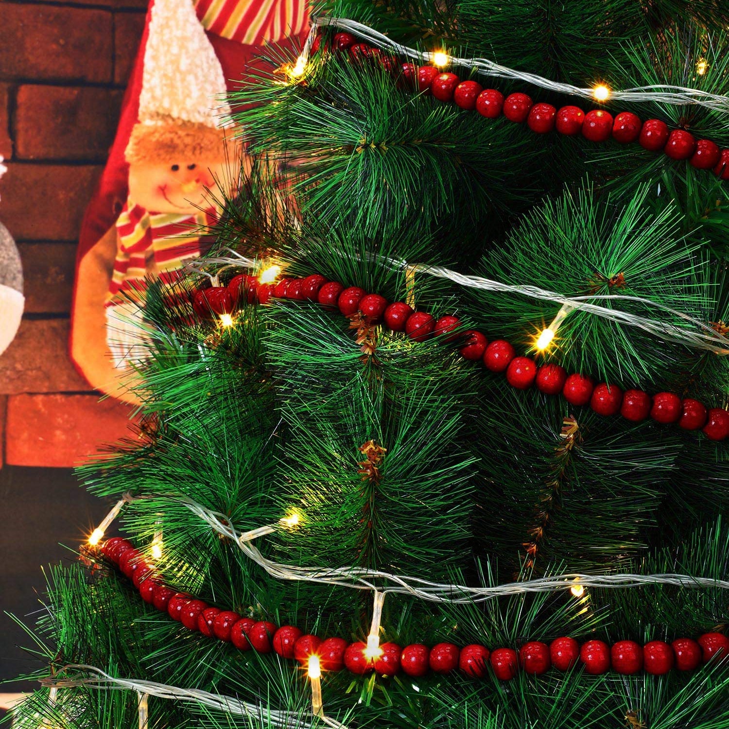 Details: 16 Feet Christmas wood bead garland wooden red bead garland for Christmas tree holiday decoration