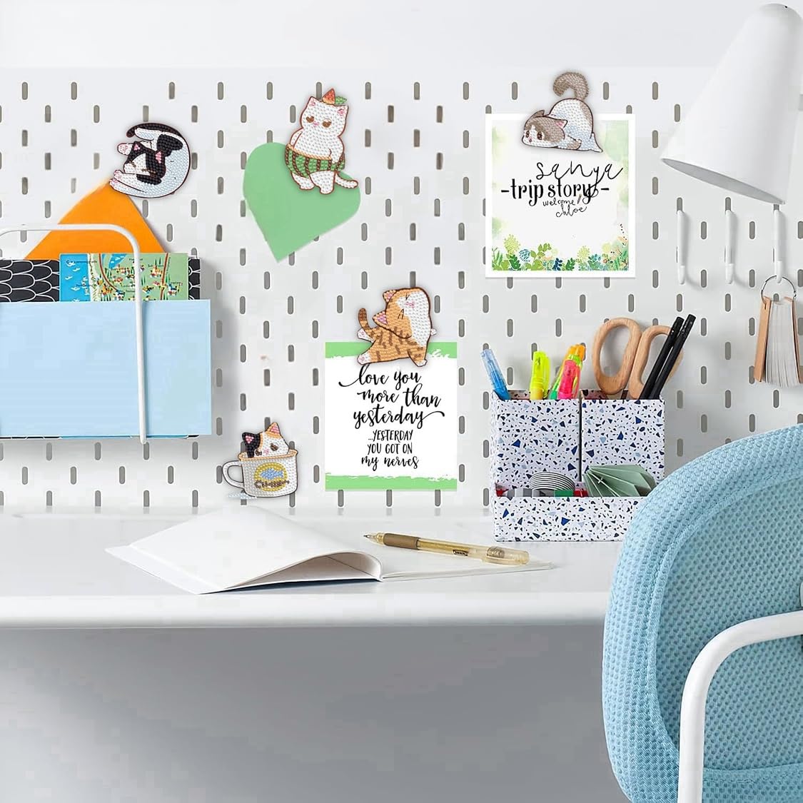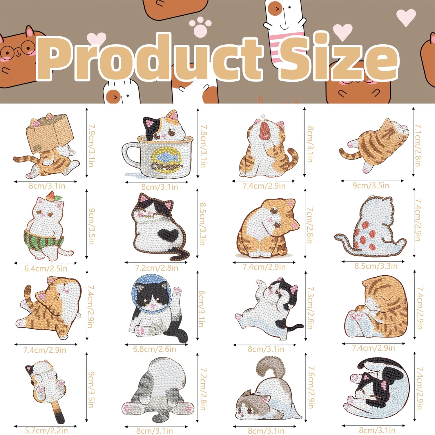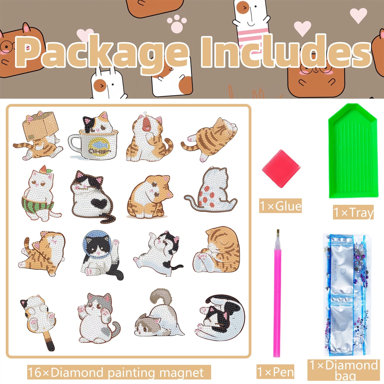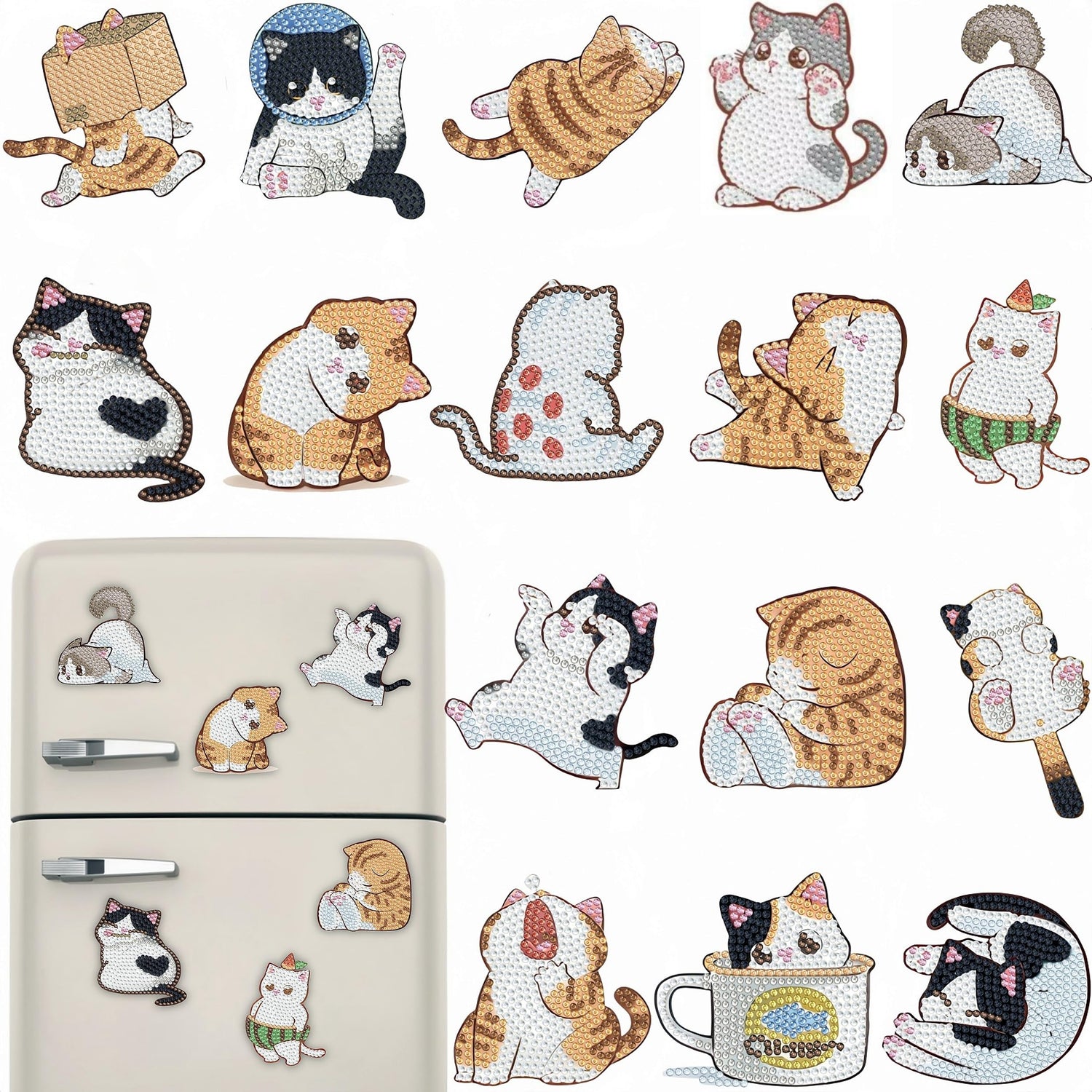 - Cat Diamond Painting Magnets Set:You will get 16 pieces of small cat diamond painting and DIY tools: trays, glue, pens, etc. The cat diamond art kit meets your DIY needs and is perfect for DIY fun with family and friends