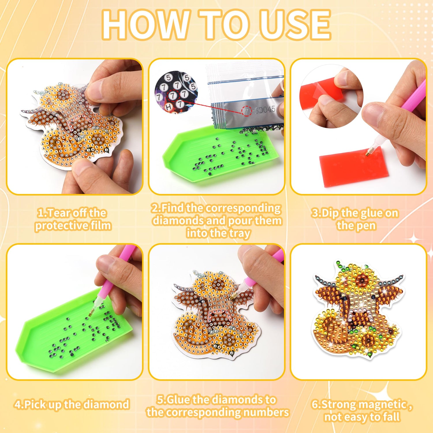 - Complete DIY Craft Kit: Each set includes a diamond pen, wax, tray, and rhinestone packs—everything you need to create detailed Halloween diamond painting magnets without needing extra tools or accessories