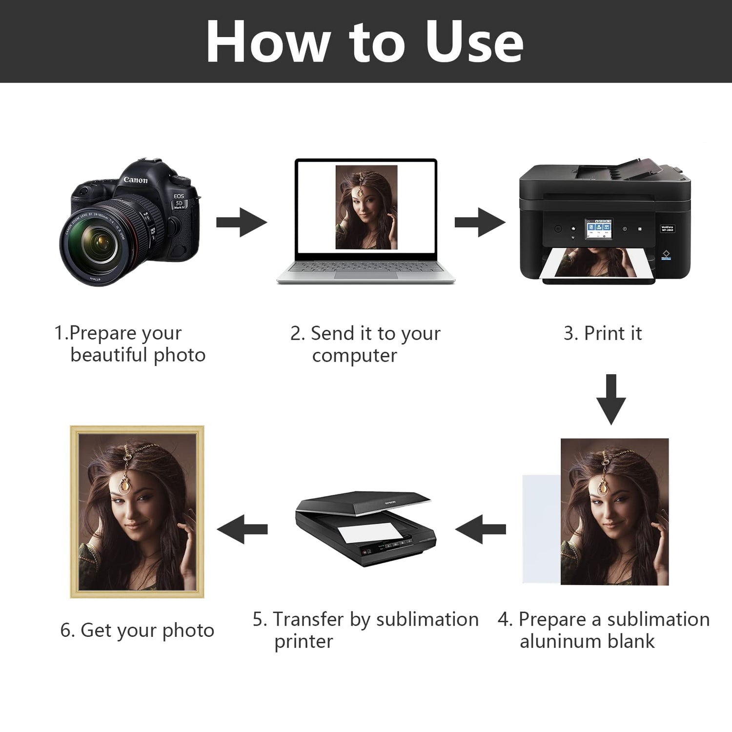 - 【Easy DIY】 With these sublimation photo blanks 6x8, you can heat press print metal photos of family, friends, pets or yourself. Simply choose meaningful symbols such as photos, paintings, logos etc. as desired and create some meaningful decorations or gifts in your own style