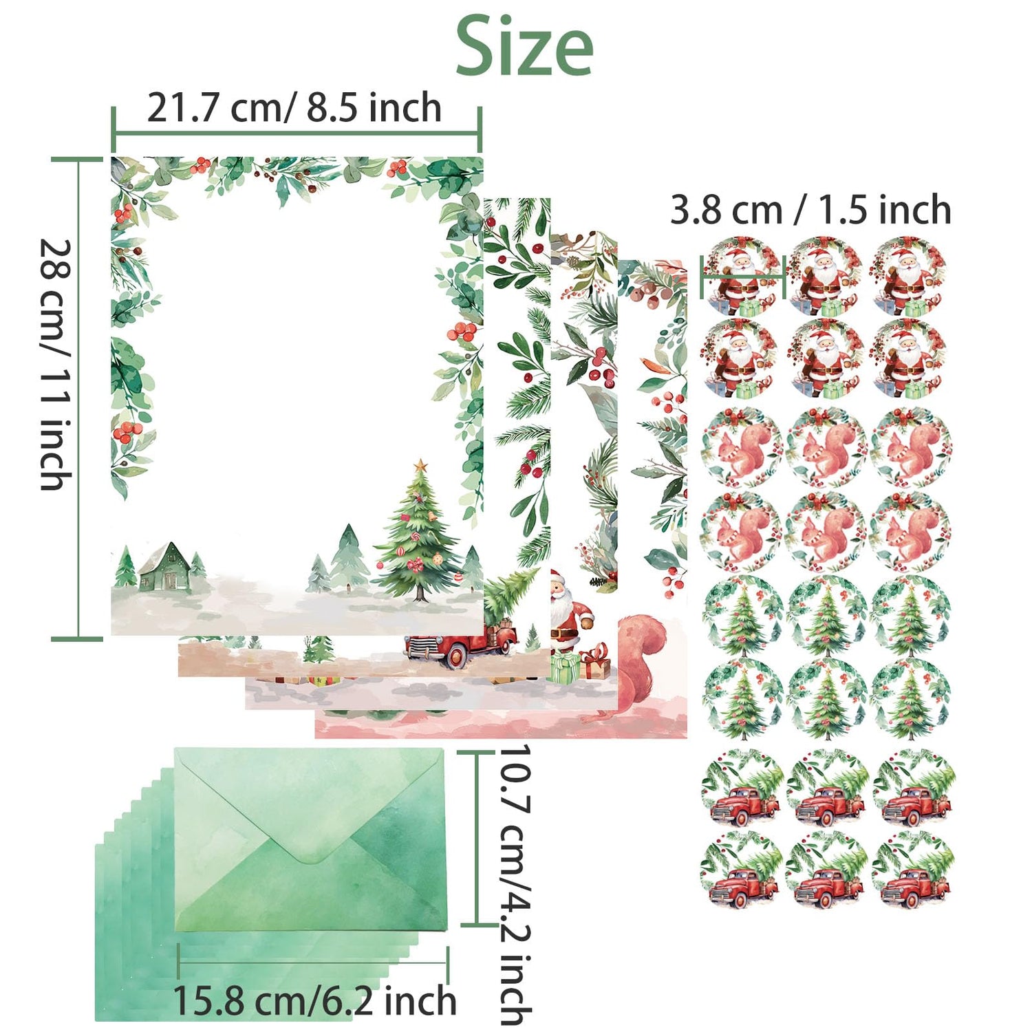 - PACKAGE: 80 Sheets Stationery Papers in 4 Patterns, 40pcs envelopes, 48pcs sealing stickers in 4 Patterns. Each letter writing paper generously sized at 8.5 x 11 inches. Enough stationery paper, envelope and stickers to last the entire Christmas season and the New Year