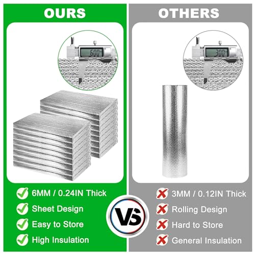 - 【Energy Saving】Aluminum insulation panels have high reflectivity and sealing performance. Insulation sheets are 6mm thick, compared with 3mm insulation roll, it can more effectively block heat entry and prevent heat loss. Garage door insulation set reduces stress on heating and cooling. Save energy and keep home warmer in winter and cooler in summer.