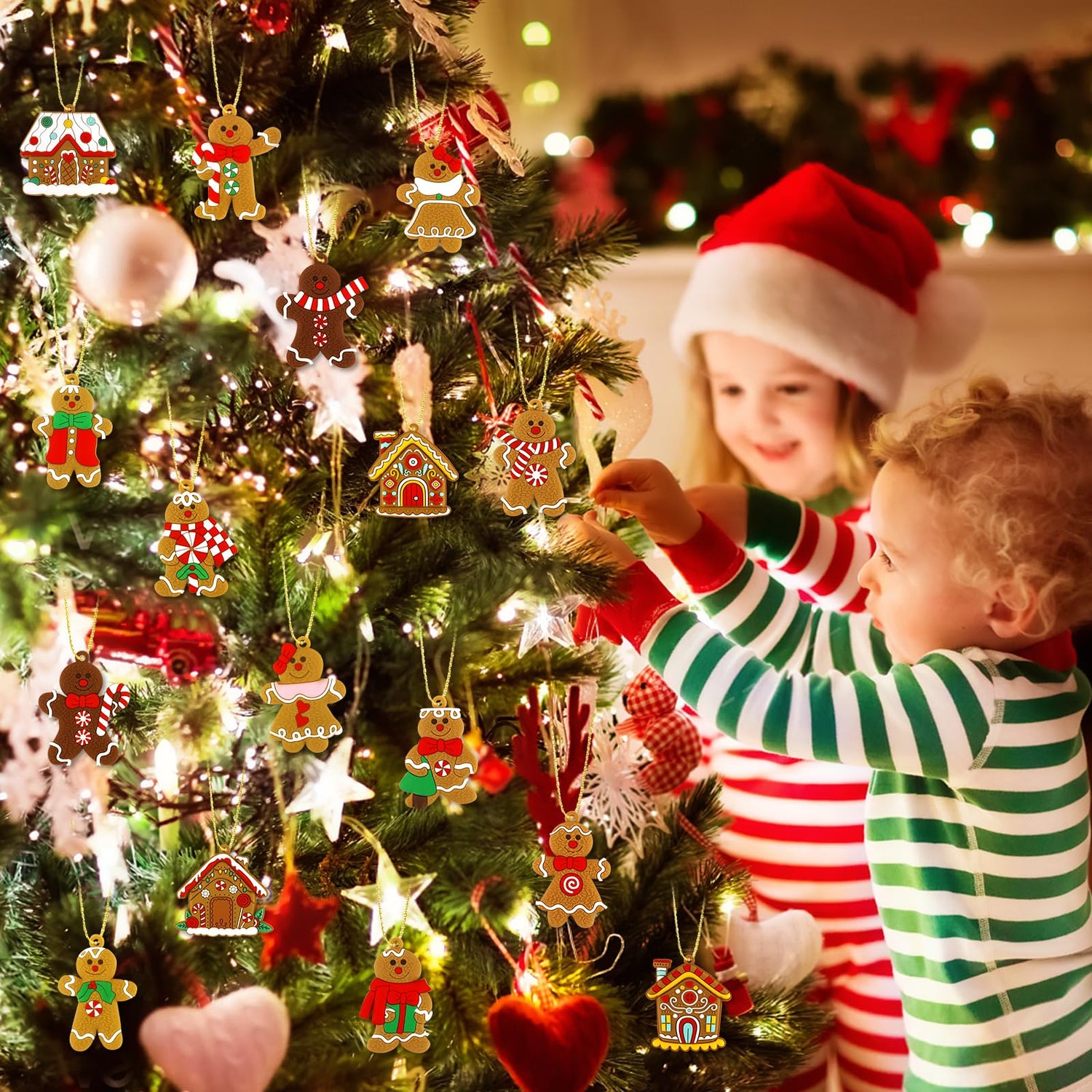 - 16Style to Decorate: You will get 12pcs gingerbread ornaments and 4pcs gingerbread house ornaments,this set is a festive ornament to decorate your holiday xmas tree, add a festive feel throughout your home, our generous quantity meets your holiday decor needs.