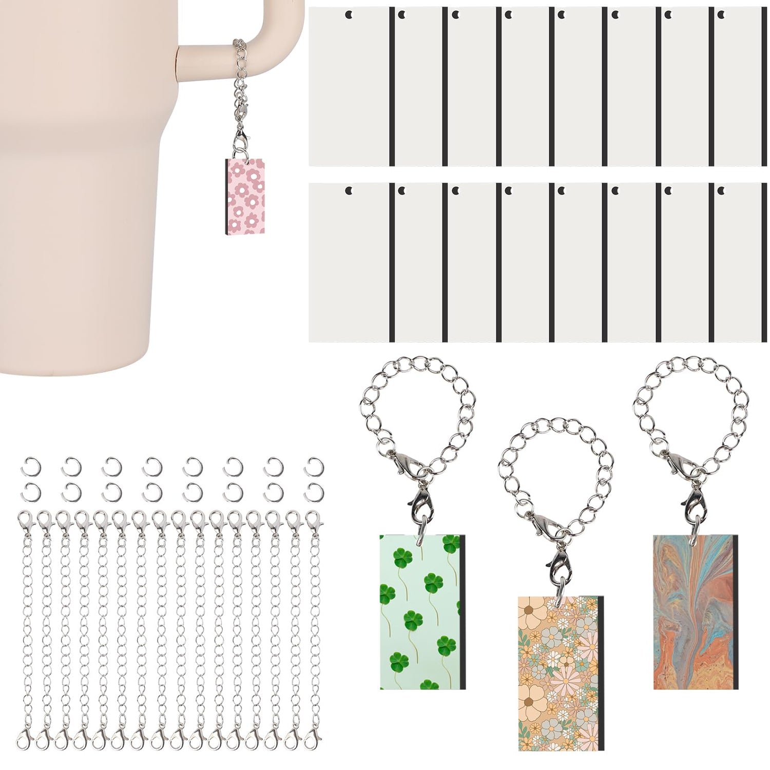 16Pcs Sublimation Charm Accessories for Cup,Sublimation Blanks Bulk Stanley Cup Charm for Tumbler Cup Sublimation Keychains Charm Sublimation Keychains MDF with Chain Jump Ring DIY Crafts (Rectangle)