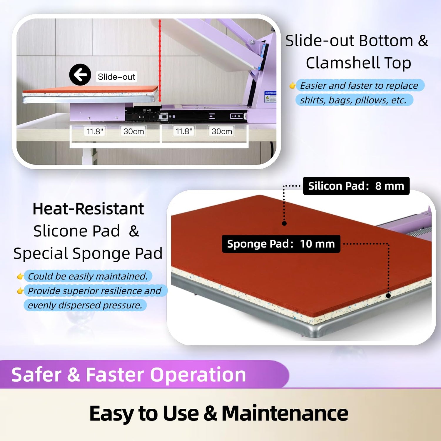 16x24 Heat Press Machine for T Shirts, 1.8-2kw, 72.77lbs High Pressure, Slide Out Sublimation Heat Transfer Press Suitable for Industrial, Small Business, or Home Use. (Purple, 16x24 Manual)
