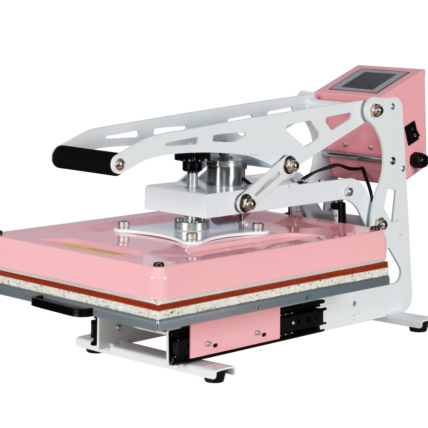 16x24 Semi-Automatic Heat Press Machine with Auto Open and Slide-Out Base (Pink+White, 13'' x 18'' (33 x 45cm))