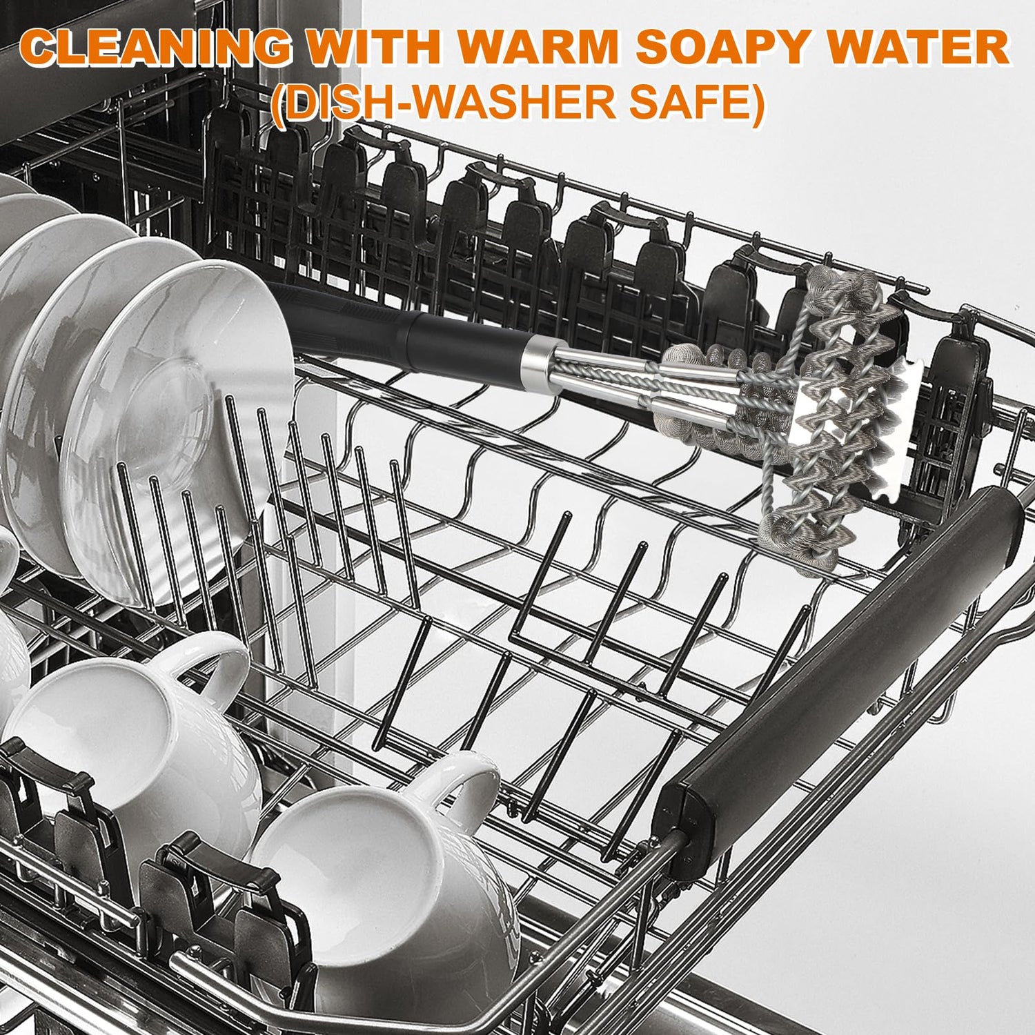 - 【Easy-to-Use Universal Grill Brush 】Heat your BBQ grill to at least 400°F, turn off the burners, dip the brush and scraper in water, and easily remove stubborn residue without breaking a sweat.