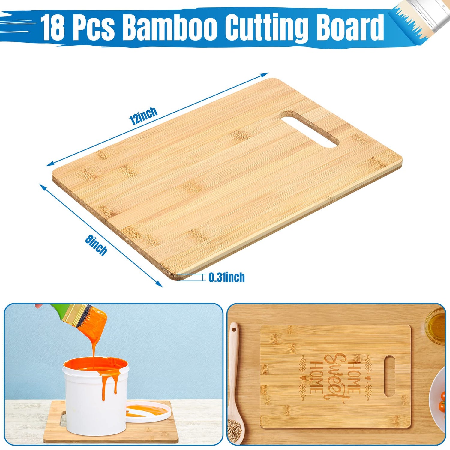 18 Pack Bulk Cutting Board Plain Large Bamboo Cutting Board Set Chopping Board with Handles Blanks Laser Engraving Cutting Board for Customized,